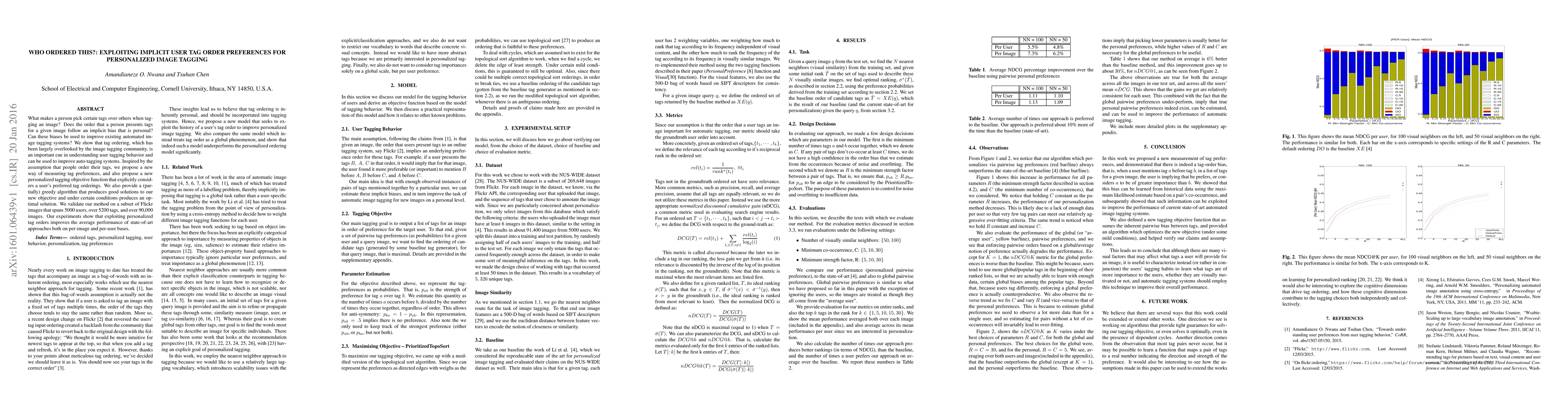 This paper explores how users' implicit preferences in tag ordering can enhance automated image tagging systems. It proposes a new method to measure tag preferences and a personalized tagging objective function that considers users' preferred tag orders, showing improved performance over existing methods on a large dataset from Flickr.