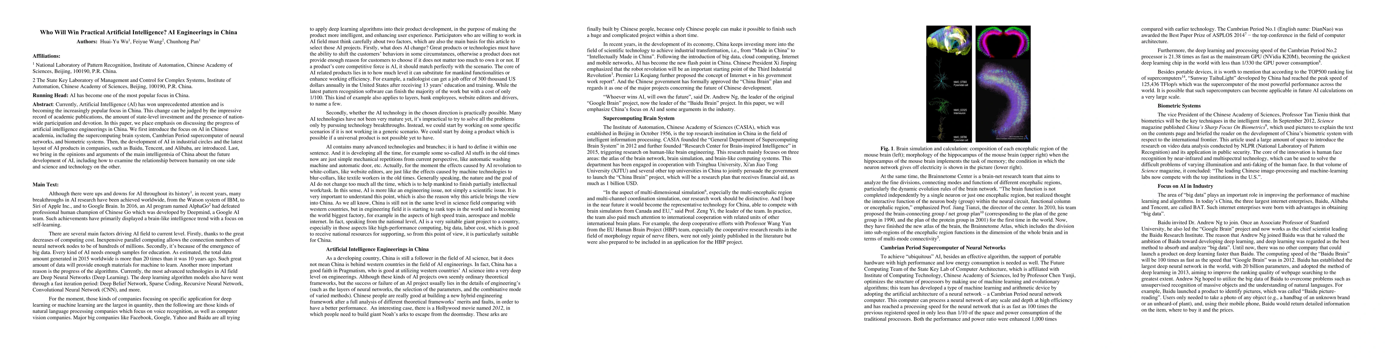 This paper explores China's advancements in artificial intelligence (AI) engineering, highlighting significant academic achievements, state investments, and industry contributions from companies like Baidu, Tencent, and Alibaba. It also discusses perspectives from Chinese intellectuals on the future of AI and its relationship with humanity.
