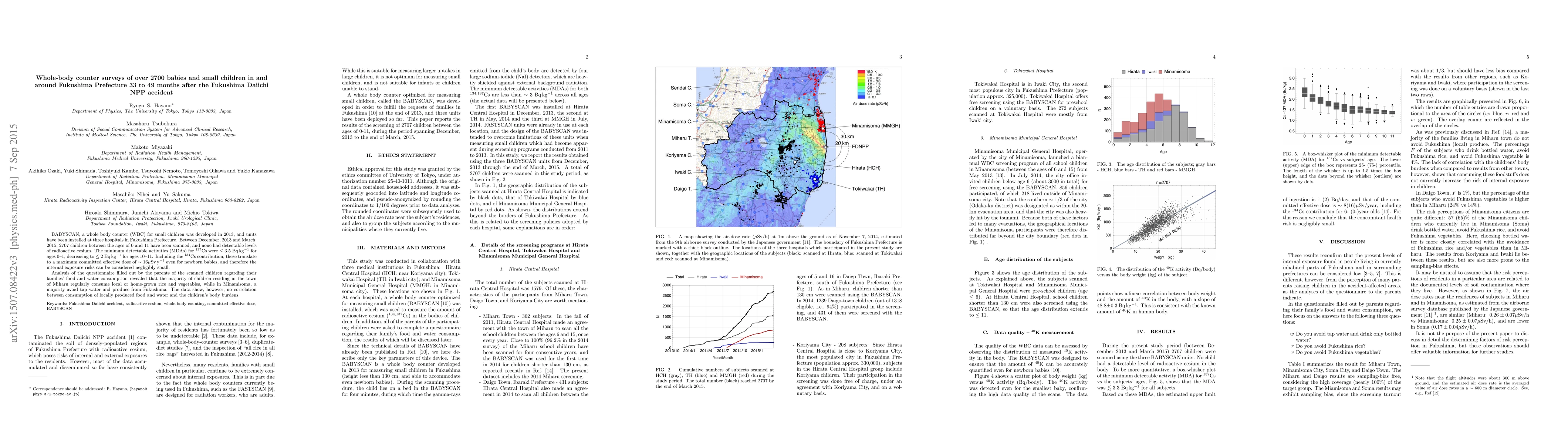 BABYSCAN, a whole body counter (WBC) for small children was developed in 2013, and units have been installed at three hospitals in Fukushima Prefecture. Between December, 2013 and March, 2015, 2707 children between the ages of 0 and 11 have been scanned, and none had detectable levels of radioactive cesium. The minimum detectable activities (MDAs) for $^{137}$Cs were $\leq 3.5$ Bq kg$^{-1}$ for ages 0-1, decreasing to $\leq 2$ Bq kg$^{-1}$ for ages 10-11. Including the $^{134}$Cs contribution, these translate to a maximum committed effective dose of $\sim 16 \mu$Sv y$^{-1}$ even for newborn babies, and therefore the internal exposure risks can be considered negligibly small. Analysis of the questionnaire filled out by the parents of the scanned children regarding their families' food and water consumption revealed that the majority of children residing in the town of Miharu regularly consume local or home-grown rice and vegetables, while in Minamisoma, a majority avoid tap water and produce from Fukushima. The data show, however, no correlation between consumption of locally produced food and water and the children's body burdens.