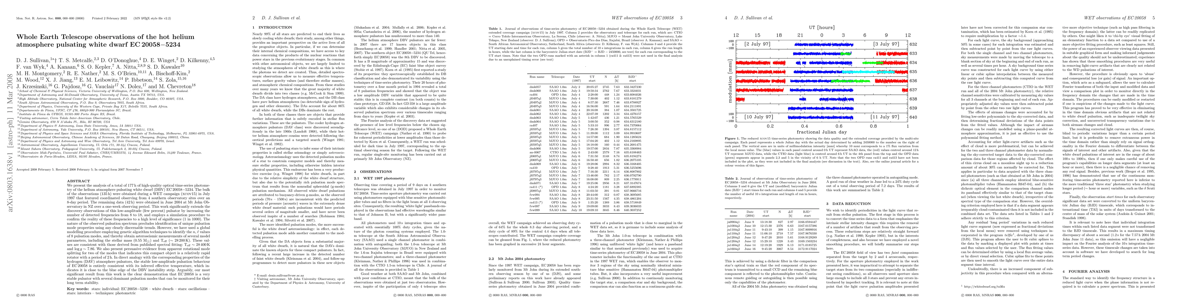 This study analyzes 177 hours of optical photometry from the pulsating helium white dwarf EC 20058-5234, identifying 18 pulsation frequencies, significantly increasing previous detections. The analysis reveals the star's mass and effective temperature, and suggests it is a rapid rotator with a period of 2 hours.