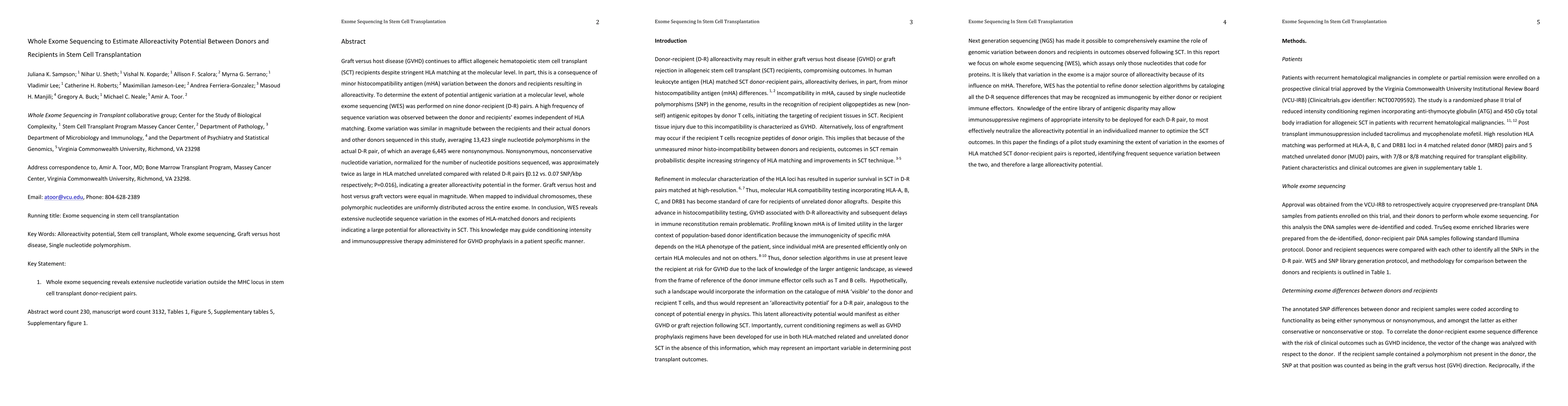 This study uses whole exome sequencing to identify nonsynonymous single nucleotide polymorphisms in HLA-matched stem cell donors and recipients, revealing greater sequence variation in unrelated donors. This knowledge could improve the precision of post-transplant immunosuppressive therapy.