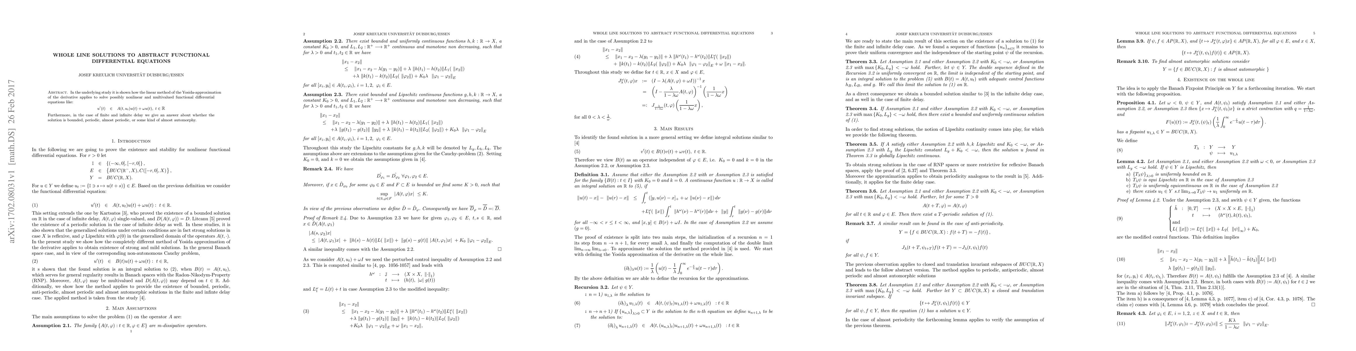 This paper presents a method to solve abstract functional differential equations, showing that linear approximation can handle nonlinear and multivalued equations. It also explores the boundedness, periodicity, almost-periodicity, and other properties of solutions for finite and infinite delays.