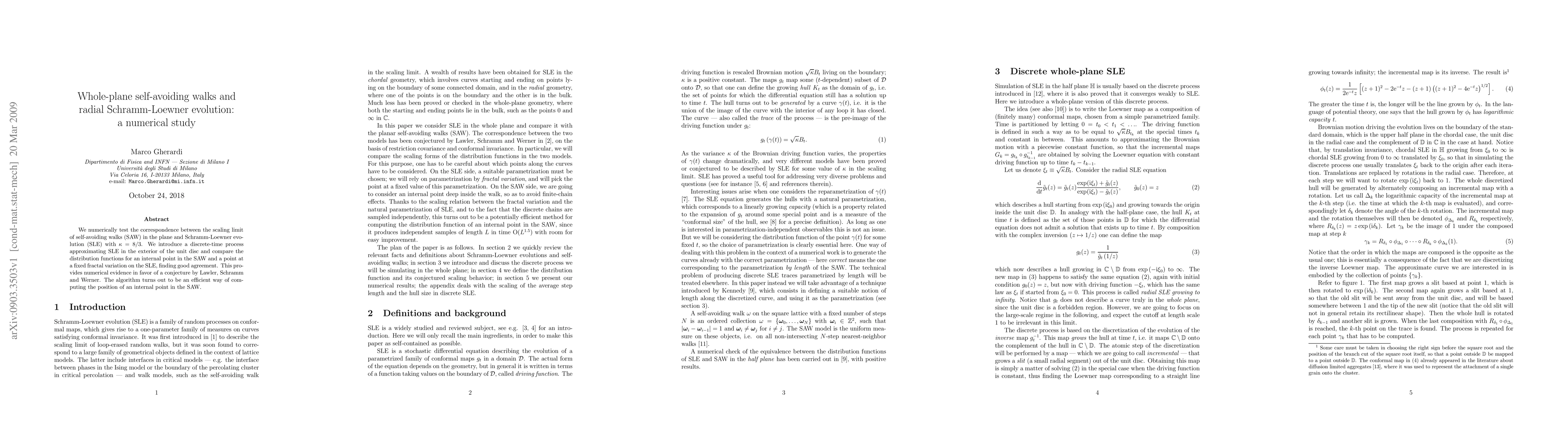 The research introduces a discrete process approximating radial Schramm-Loewner evolution (SLE) growing to infinity, iterating conformal maps defined outside the unit disc. It considers the distribution function of a point on the trace at a fixed value of the fractal variation and measures the distribution function of a point deep inside a whole-plane self-avoiding walk.