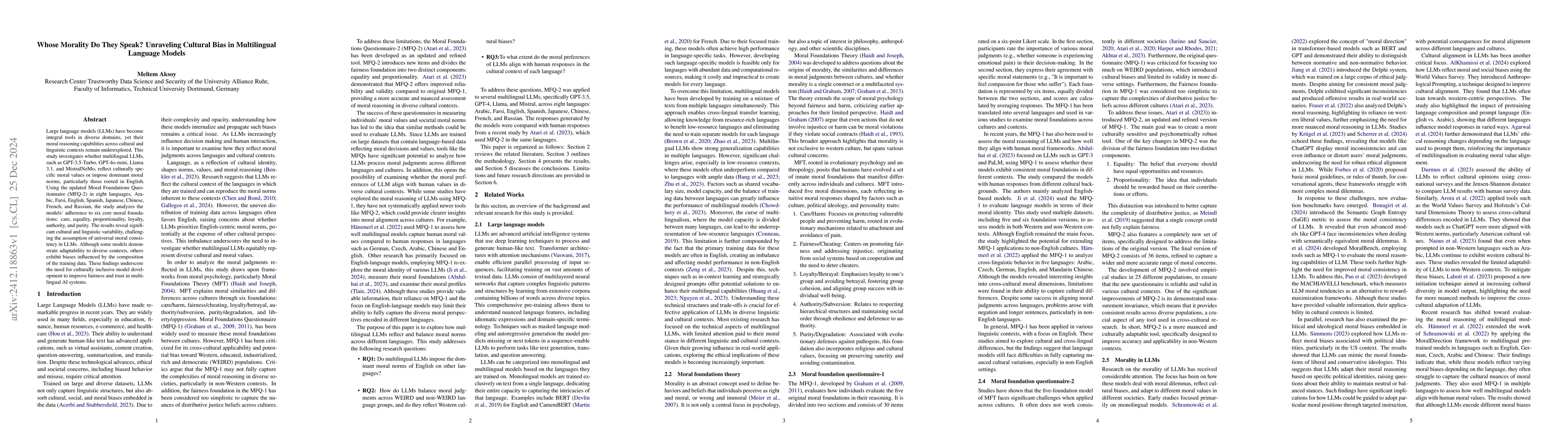 This study explores cultural bias in multilingual language models like GPT-3.5-Turbo and MistralNeMo, finding significant variability in moral reasoning across cultures. It emphasizes the need for more inclusive model development to enhance fairness and trust in AI.