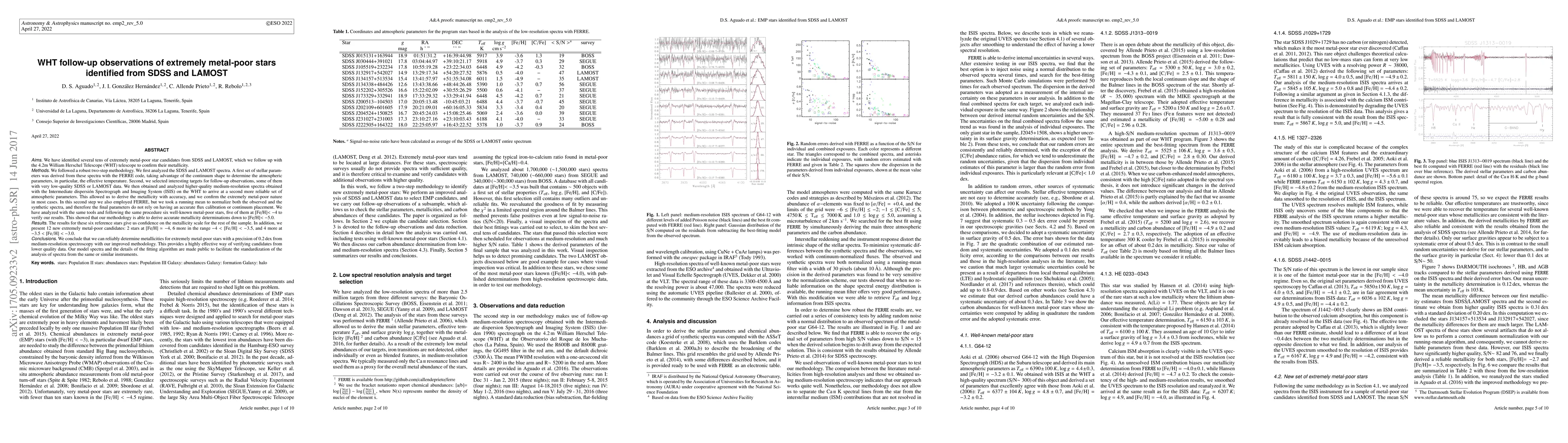 This study identifies extremely metal-poor star candidates from SDSS and LAMOST, confirming their low metallicity using WHT telescope observations. The methodology involves initial analysis with SDSS and LAMOST data, followed by a refined analysis with higher-resolution WHT spectra, resulting in the confirmation of 12 new extremely metal-poor stars.