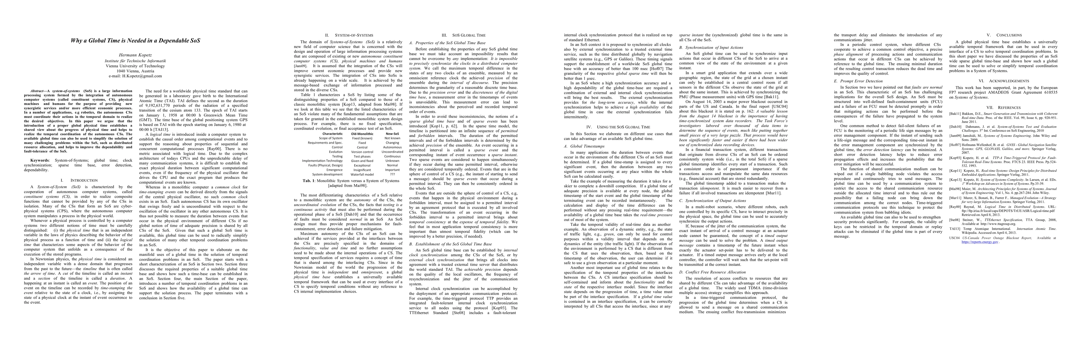 A system-of-systems (SoS) is a large information processing system formed by the integration of autonomous computer systems (called constituent systems, CS), physical machines and humans for the purpose of providing new synergistic services and/or more efficient economic processes. In a number of applications, e.g robotics, the autonomous CSs must coordinate their actions in the temporal domain to realize the desired objectives. In this paper we argue that the introduction of a proper global physical time establishes a shared view about the progress of physical time and helps to realize the temporal coordination of the autonomous CSs. The available global time can also be used to simplify the solution of many challenging problems within the SoS, such as distributed resource allocation, and helps to improve the dependability and fault-tolerance of the SoS.