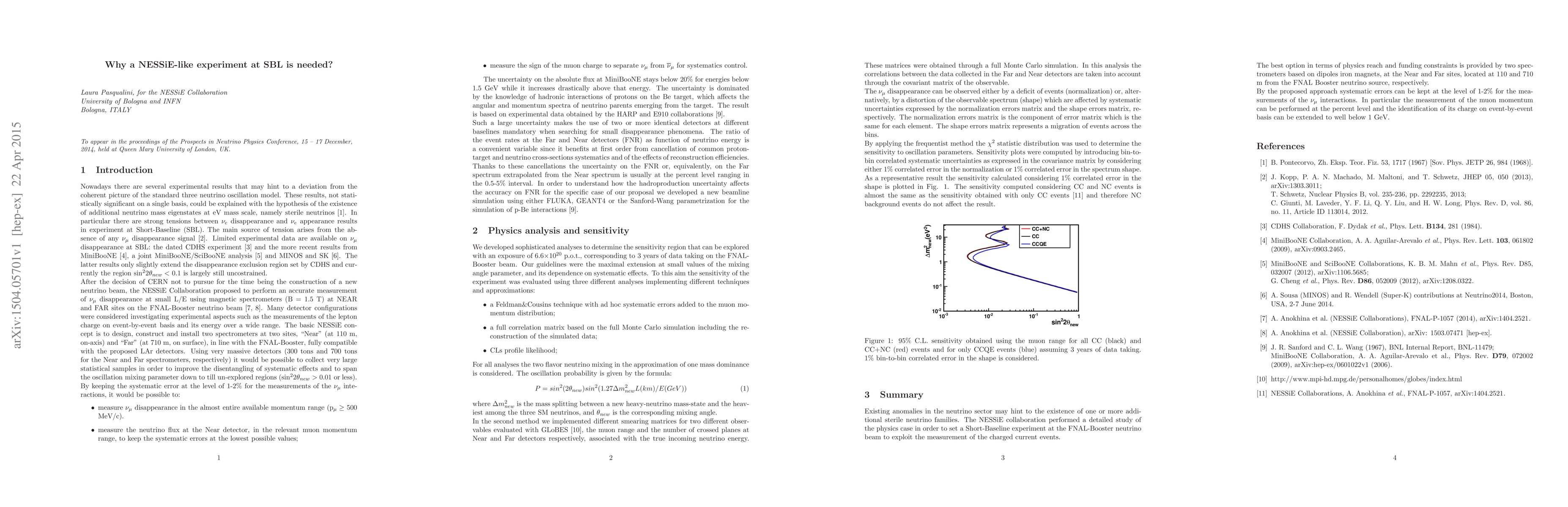 The NESSiE experiment aims to accurately measure muon-neutrino disappearance to explore beyond-three-neutrino models and potentially discover new neutrino oscillations. A similar experiment at SBL would resolve existing tensions in neutrino oscillation results and provide the most efficient path to studying neutrino physics at the eV mass scale.