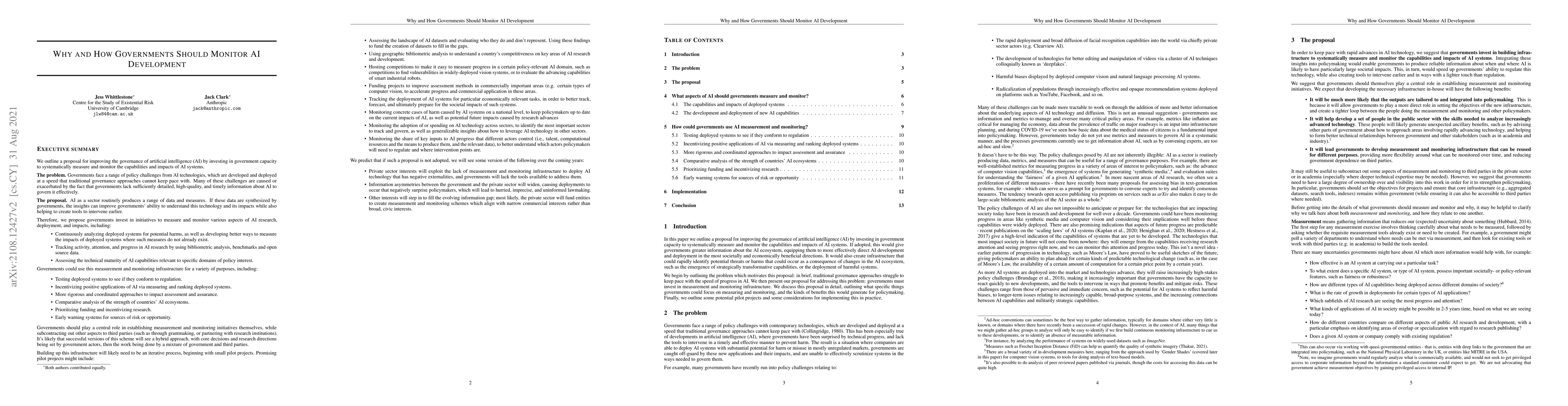In this paper we outline a proposal for improving the governance of artificial intelligence (AI) by investing in government capacity to systematically measure and monitor the capabilities and impacts of AI systems. If adopted, this would give governments greater information about the AI ecosystem, equipping them to more effectively direct AI development and deployment in the most societally and economically beneficial directions. It would also create infrastructure that could rapidly identify potential threats or harms that could occur as a consequence of changes in the AI ecosystem, such as the emergence of strategically transformative capabilities, or the deployment of harmful systems. We begin by outlining the problem which motivates this proposal: in brief, traditional governance approaches struggle to keep pace with the speed of progress in AI. We then present our proposal for addressing this problem: governments must invest in measurement and monitoring infrastructure. We discuss this proposal in detail, outlining what specific things governments could focus on measuring and monitoring, and the kinds of benefits this would generate for policymaking. Finally, we outline some potential pilot projects and some considerations for implementing this in practice.