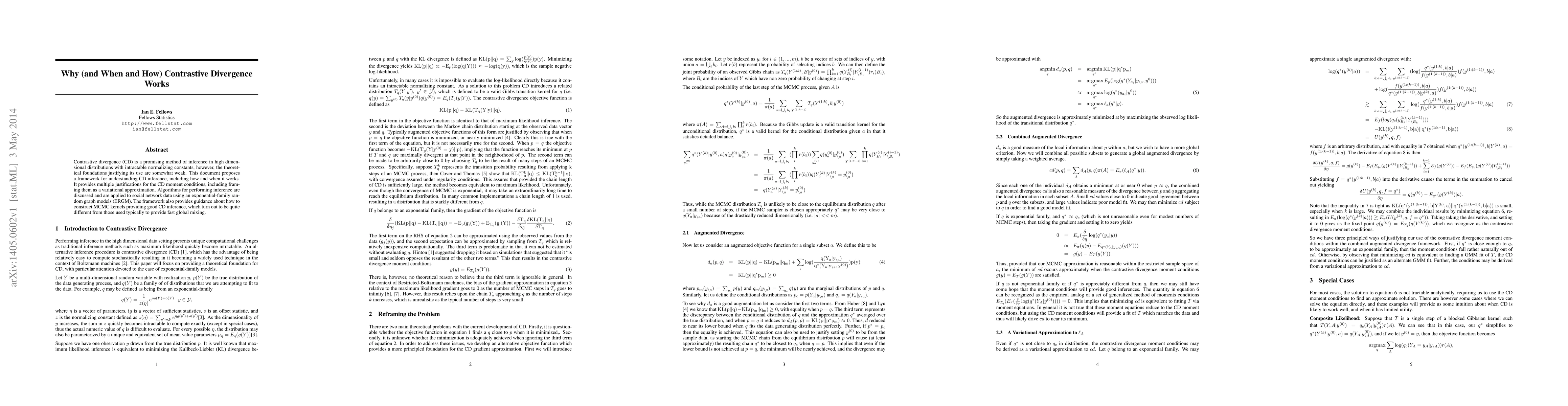 This paper develops a theoretical framework for understanding contrastive divergence (CD) inference, explaining why and when it works, and provides justifications for its use as a variational approximation. It applies CD algorithms to social network data using ERGM and offers guidance on constructing MCMC kernels for effective CD inference.