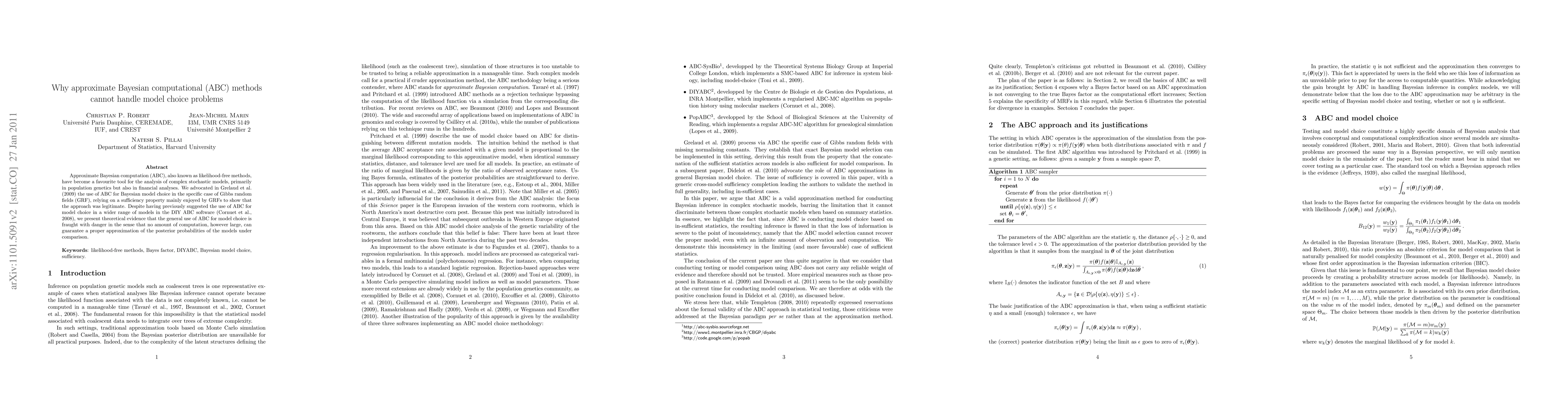 This paper argues that approximate Bayesian computational (ABC) methods, while useful for analyzing complex stochastic models, are fundamentally inadequate for model choice problems due to theoretical limitations that prevent accurate approximation of posterior probabilities, regardless of computational effort.