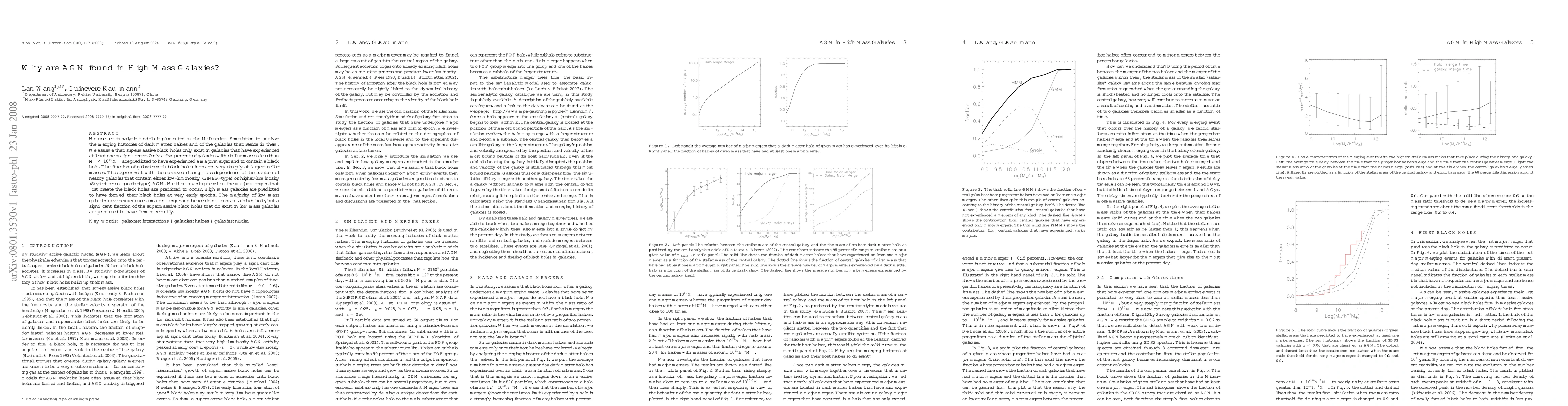 A study using simulations found that supermassive black holes are more common in high-mass galaxies, as they often form after major mergers at early epochs, whereas low-mass galaxies rarely experience such mergers.