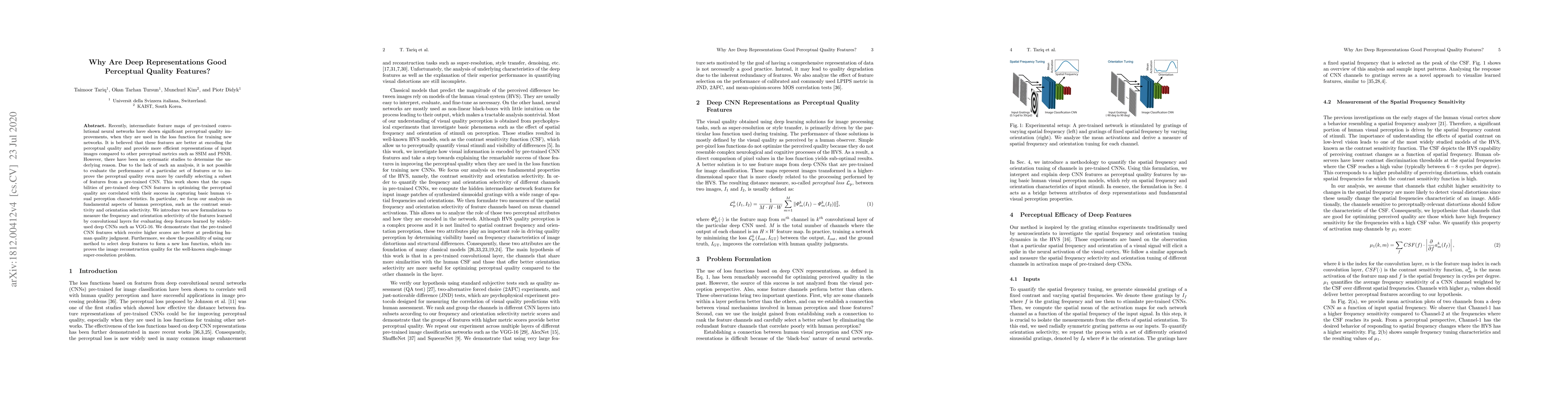Recently, intermediate feature maps of pre-trained convolutional neural networks have shown significant perceptual quality improvements, when they are used in the loss function for training new networks. It is believed that these features are better at encoding the perceptual quality and provide more efficient representations of input images compared to other perceptual metrics such as SSIM and PSNR. However, there have been no systematic studies to determine the underlying reason. Due to the lack of such an analysis, it is not possible to evaluate the performance of a particular set of features or to improve the perceptual quality even more by carefully selecting a subset of features from a pre-trained CNN. This work shows that the capabilities of pre-trained deep CNN features in optimizing the perceptual quality are correlated with their success in capturing basic human visual perception characteristics. In particular, we focus our analysis on fundamental aspects of human perception, such as the contrast sensitivity and orientation selectivity. We introduce two new formulations to measure the frequency and orientation selectivity of the features learned by convolutional layers for evaluating deep features learned by widely-used deep CNNs such as VGG-16. We demonstrate that the pre-trained CNN features which receive higher scores are better at predicting human quality judgment. Furthermore, we show the possibility of using our method to select deep features to form a new loss function, which improves the image reconstruction quality for the well-known single-image super-resolution problem.