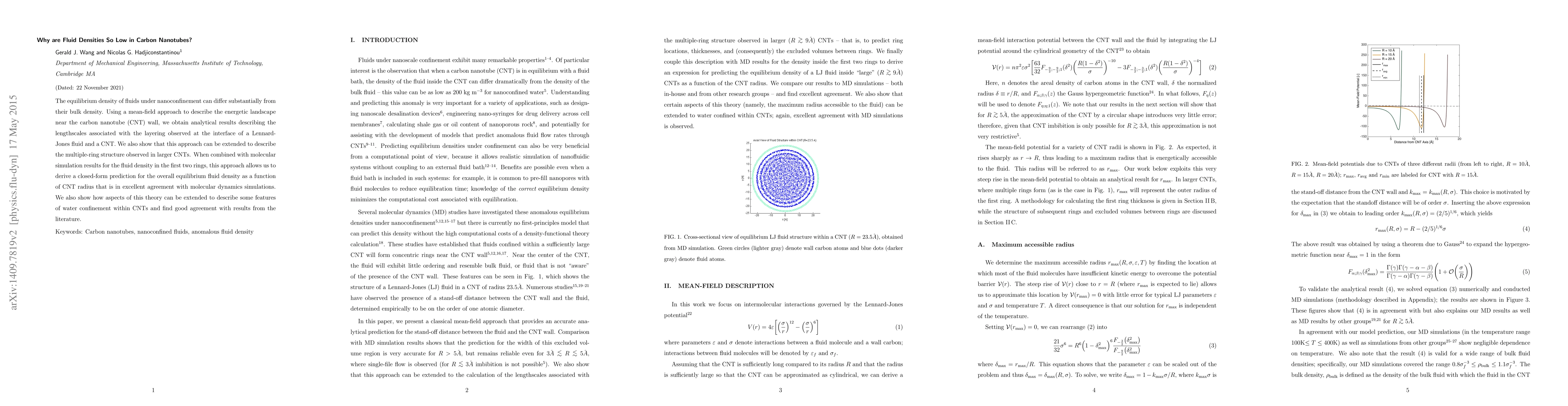 The equilibrium density of fluids under nanoconfinement can differ substantially from their bulk density. Using a mean-field approach to describe the energetic landscape near the carbon nanotube (CNT) wall, we obtain analytical results describing the lengthscales associated with the layering observed at the fluid-CNT interface. When combined with molecular simulation results for the fluid density in the layered region, this approach allows us to derive a closed-form prediction for the overall equilibrium fluid density as a function of the CNT radius that is in excellent agreement with molecular dynamics simulations. We also show how aspects of this theory can be extended to describe water confined within CNTs and find good agreement with results from the literature.