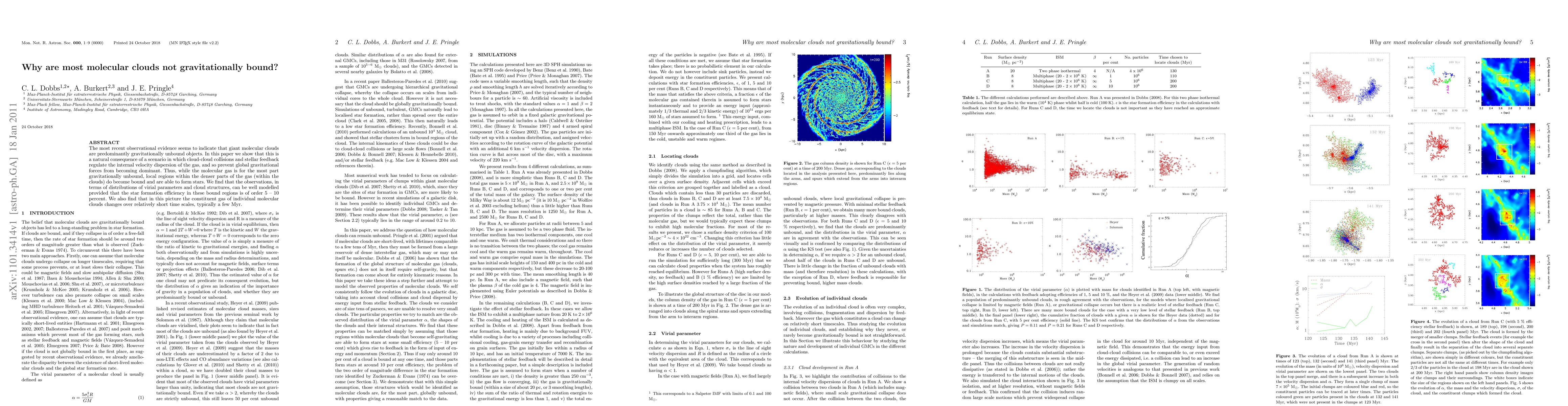 The most recent observational evidence seems to indicate that giant molecular clouds are predominantly gravitationally unbound objects. In this paper we show that this is a natural consequence of a scenario in which cloud-cloud collisions and stellar feedback regulate the internal velocity dispersion of the gas, and so prevent global gravitational forces from becoming dominant. Thus, while the molecular gas is for the most part gravitationally unbound, local regions within the denser parts of the gas (within the clouds) do become bound and are able to form stars. We find that the observations, in terms of distributions of virial parameters and cloud structures, can be well modelled provided that the star formation efficiency in these bound regions is of order 5 - 10 percent. We also find that in this picture the constituent gas of individual molecular clouds changes over relatively short time scales, typically a few Myr.