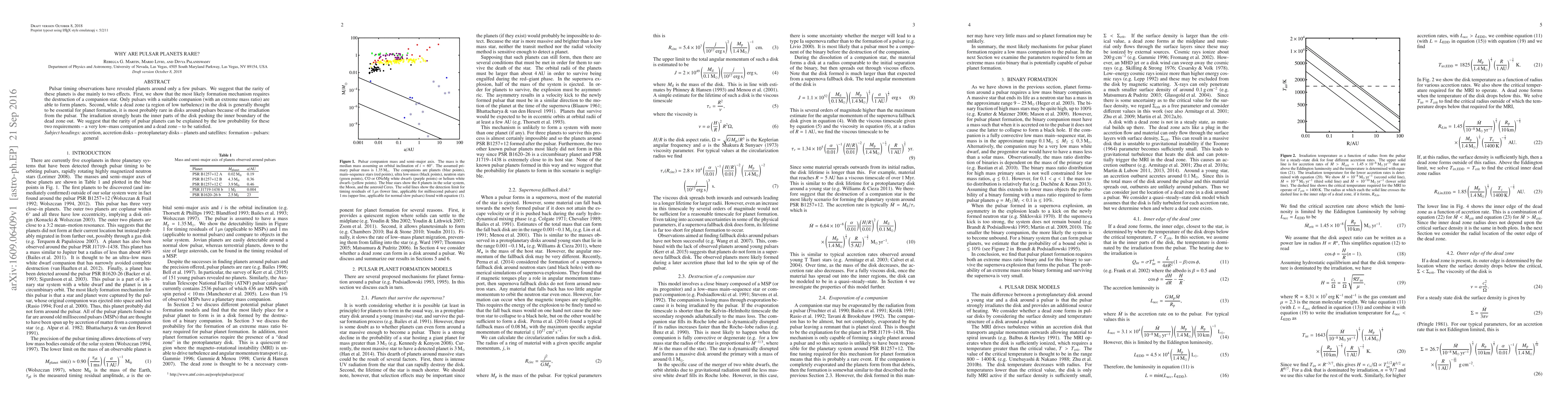 Pulsar planets are rare due to a low-mass companion and dead zone formation, which is hindered by pulsar irradiation. This results in only a few known planets around pulsars.