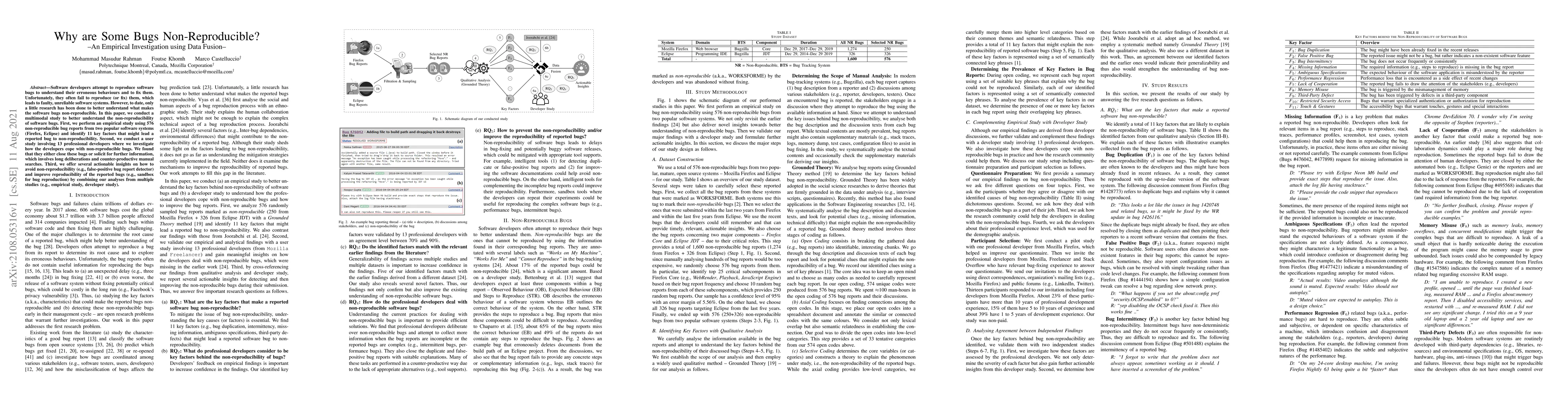 This paper investigates the factors contributing to non-reproducible software bugs through empirical and user studies, identifying 11 key factors and suggesting actionable insights like a false-positive detector and a bug reproduction sandbox to enhance bug report reliability.