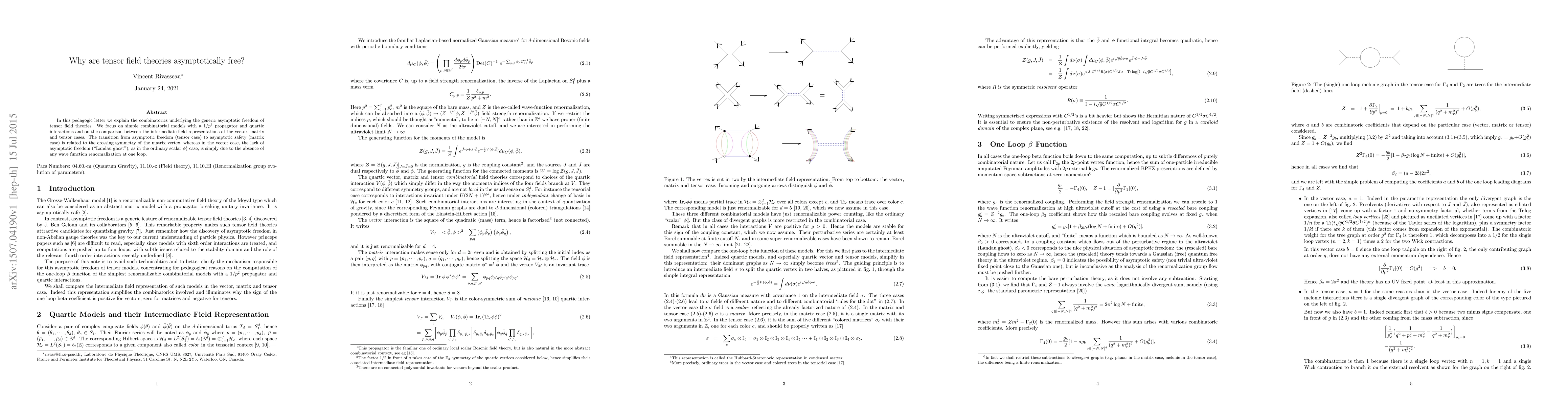 This paper elucidates the combinatorics behind the asymptotic freedom in tensor field theories, contrasting it with the asymptotic safety in matrix field theories, and attributes the lack of asymptotic freedom in vector field theories to the absence of wave function renormalization.
