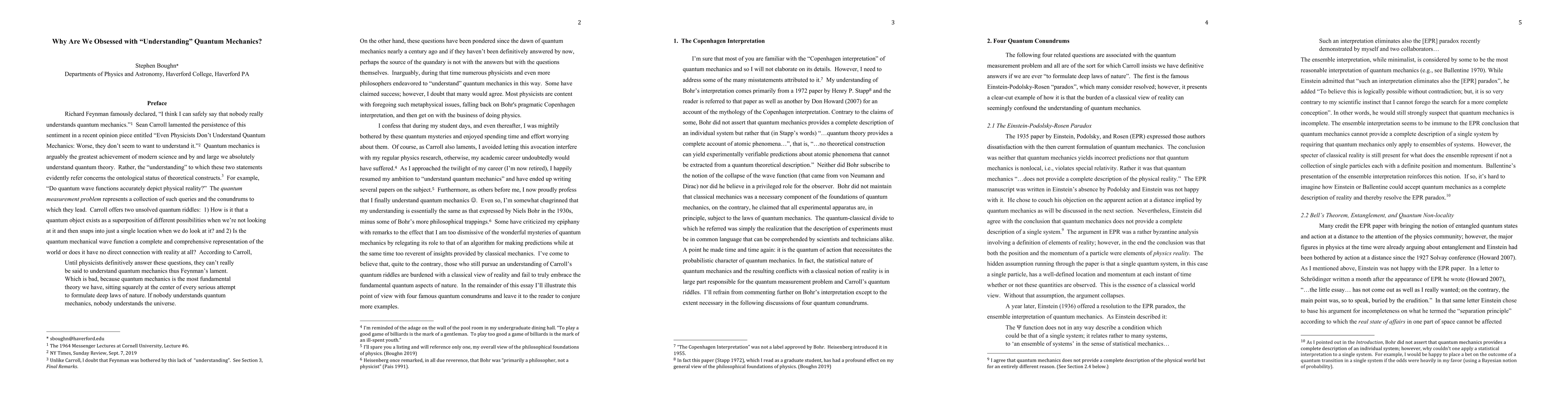 Richard Feynman famously declared, "I think that I can safely say that nobody really understands quantum mechanics." Sean Carroll lamented the persistence of this sentiment in a recent opinion piece entitled, "Even Physicists Don't Understand Quantum Mechanics. Worse, they don't seem to want to understand it." Quantum mechanics is arguably the greatest achievement of modern science and by and large we absolutely understand quantum theory. Rather, the "understanding" to which these two statements evidently refer concerns the ontological status of theoretical constructs. For example, "Do quantum wave functions accurately depict physical reality?" The quantum measurement problems represents a collection of such queries and the conundrums to which they lead. Most physicists are content with foregoing such metaphysical issues, falling back on Bohr's Copenhagen interpretation, and then get on with the business of doing physics. I suspect that Carroll would criticize these physicists as being too dismissive of the wonderful mysteries of quantum mechanics by relegating its role to that of an algorithm for making predictions. Quite to the contrary, I maintain that those who still pursue a resolution to the measurement problem are burdened with a classical view of reality and fail to truly embrace the fundamental quantum aspects of nature.