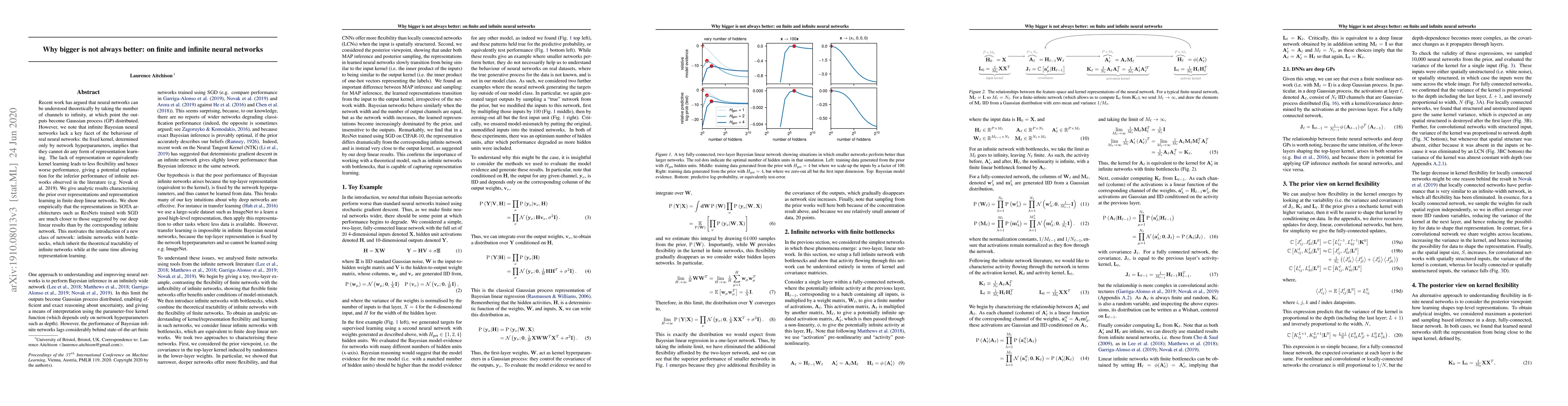 This paper argues that infinite neural networks, despite their theoretical advantages, lack representation learning capabilities due to fixed kernels, leading to inferior performance. It introduces a new class of networks—infinite networks with bottlenecks—that combine theoretical tractability with representation learning.