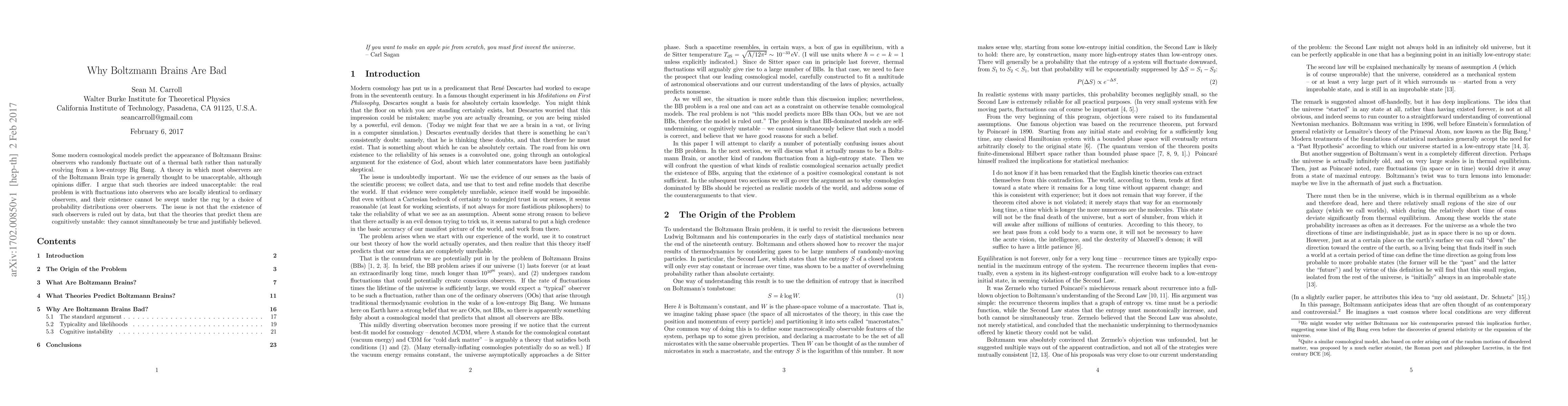 Title: Why Boltzmann Brains Are Bad Summary: The paper argues that theories predicting the emergence of Boltzmann Brains—observers arising from random fluctuations—are unacceptable due to cognitive instability, as they cannot be both true and justifiably believed. The issue lies in the existence of locally identical observers rather than being ruled out by empirical data.