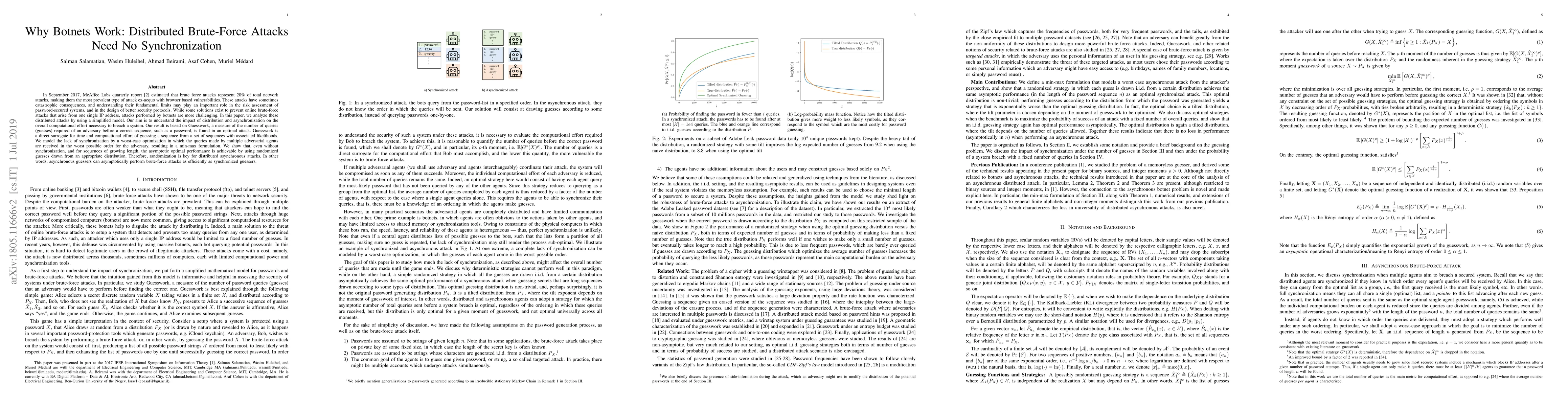 Researchers found that botnets can launch efficient brute-force attacks without synchronization, using randomization to achieve optimal performance, making them a significant threat to password-secured systems.