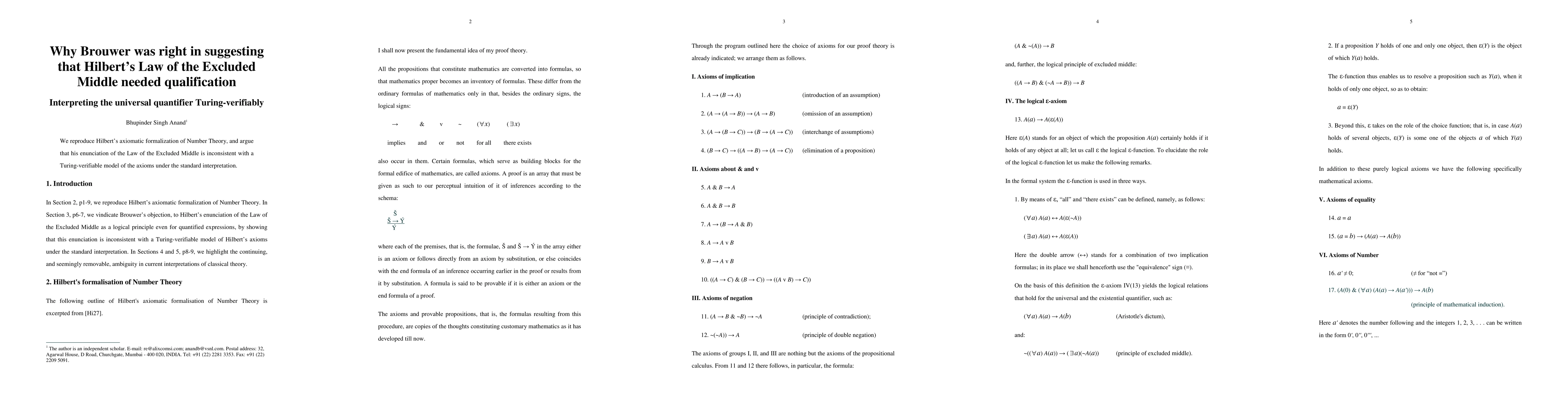 This paper argues that Hilbert's formulation of the Law of the Excluded Middle is inconsistent with a Turing-verifiable model of Number Theory's axioms, supporting Brouwer's view that the law requires qualification. The inconsistency highlights the need for a more nuanced understanding of logical principles in formal systems.