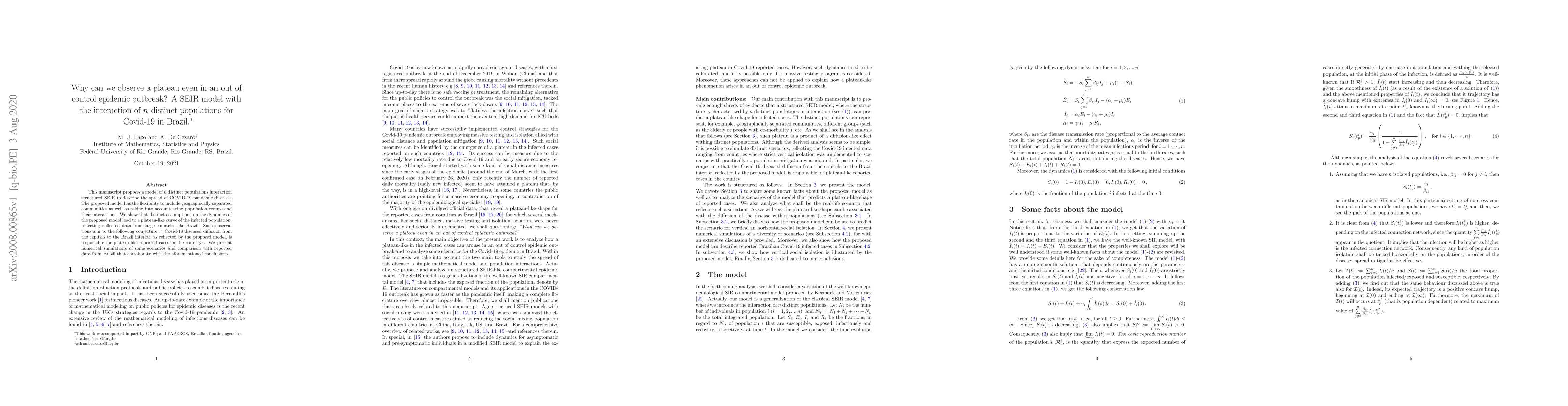 This paper proposes a structured SEIR model to analyze the COVID-19 outbreak in Brazil, considering interactions between distinct populations. It demonstrates that the diffusion of the disease from major cities to the interior can lead to a plateau in infection rates, corroborated by numerical simulations and Brazilian data.