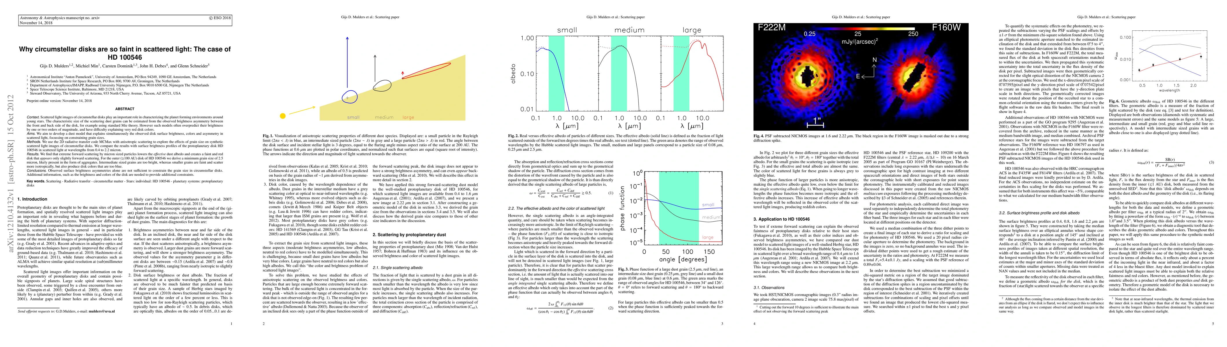 Scattered light images of circumstellar disks play an important role in characterizing the planet forming environments around young stars. The characteristic size of the scattering dust grains can be estimated from the observed brightness asymmetry between the front and back side of the disk, for example using standard Mie theory. However such models often overpredict their brightness by one or two orders of magnitude, and have difficulty explaining very red disk colors. We aim to develop a dust model that explains simultaneously the observed disk surface brightness, colors and asymmetry in scattered light, focusing on constraining grain sizes. We use the 2D radiative transfer code MCMax with anisotropic scattering to explore the effects of grain size on synthetic scattered light images of circumstellar disks. We compare the results with surface brightness profiles of the protoplanetary disk HD 100546 in scattered light at wavelengths from 0.4 to 2.2 micron. We find that extreme forward scattering by micron sized particles lowers the /effective/ dust albedo and creates a faint and red disk that /appears/ only slightly forward scattering. For the outer (>~100 AU) disk of HD 100546 we derive a minimum grain size of 2.5 micron, likely present in the form of aggregates. Intermediate sized grains are too bright, whereas smaller grains are faint and scatter more isotropically, but also produce disk colors that are too blue. Observed surface brightness asymmetries alone are not sufficient to constrain the grain size in circumstellar disks. Additional information, such as the brightness and colors of the disk are needed to provide additional constraints.