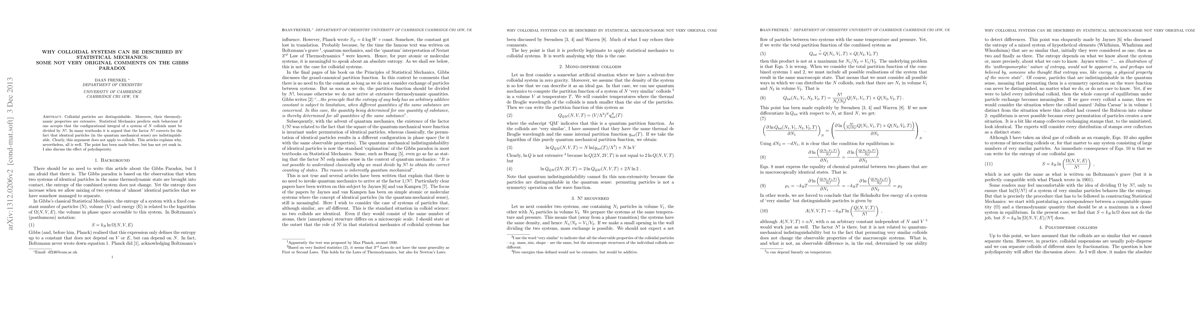 Colloidal particles are distinguishable. Moreover, their thermodynamic properties are extensive. Statistical Mechanics predicts such behaviour if one accepts that the configurational integral of a system of N colloids must be divided by N!. In many textbooks it is argued that the factor N! corrects for the fact that identical particles (in the quantum mechanical sense) are indistinguishable. Clearly, this argument does not apply to colloids. This articles explains why, nevertheless, all is well. The point has been made before, but has not yet sunk in. I also discuss the effect of polydispersity.