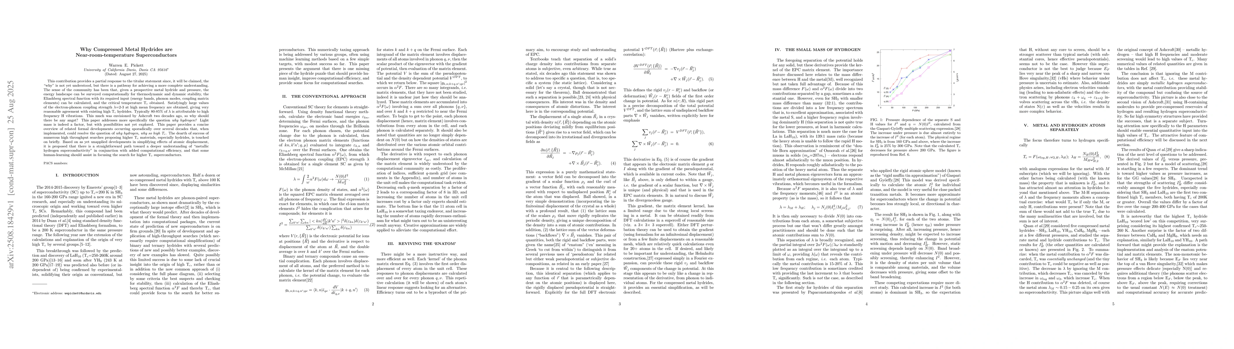 This contribution provides a partial response to the titular statement since, it will be claimed,the ``why'' is not yet understood, but there is a pathway for achieving a more complete understanding. The sense of the community has been that, given a prospective metal hydride and pressure, the energy landscape can be surveyed computationally for thermodynamic and dynamic stability, the Eliashberg spectral function with its required input (energy bands, phonon modes, coupling matrix elements) can be calculated, and the critical temperature T$_c$ obtained. Satisfyingly large values of the electron-phonon coupling strength $\lambda$=2-3 at high mean frequency are obtained, giving very reasonable agreement with existing high T$_c$ hydrides. Typically 80-85\% of $\lambda$ is attributable to high frequency H vibrations. This much was envisioned by Ashcroft two decades ago, so why should there be any angst? This paper addresses more specifically the question {\it why hydrogen?} Light mass is indeed a factor, but with possibilities not yet explored. This paper provides a concise overview of related formal developments occurring sporadically over several decades that, when implemented, could resolve the question of {\it why hydrogen, why so high T$_c$.} The dearth of success of numerous high throughput searches proposing higher T$_c$ materials, especially hydrides, is touched on briefly. Based on as yet unapplied developments in simplifying effects of atomic displacement, it is proposed that there is a straightforward path toward a deeper understanding of ``metallic hydrogen superconductivity" in conjunction with added computational efficiency, and that some human-learning should assist in focusing the search for higher T$_c$ superconductors.