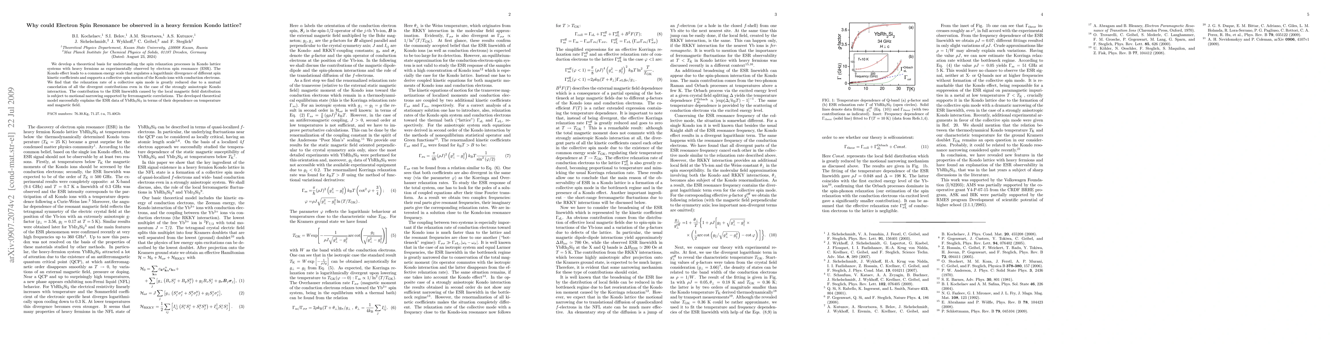 This paper develops a theoretical framework to explain electron spin resonance (ESR) observations in heavy fermion Kondo lattice systems, showing that the Kondo effect regulates spin relaxation and leads to reduced relaxation rates due to mutual cancellation of divergent contributions. The model also accounts for motional narrowing effects and successfully interprets ESR data for YbRh2Si2.