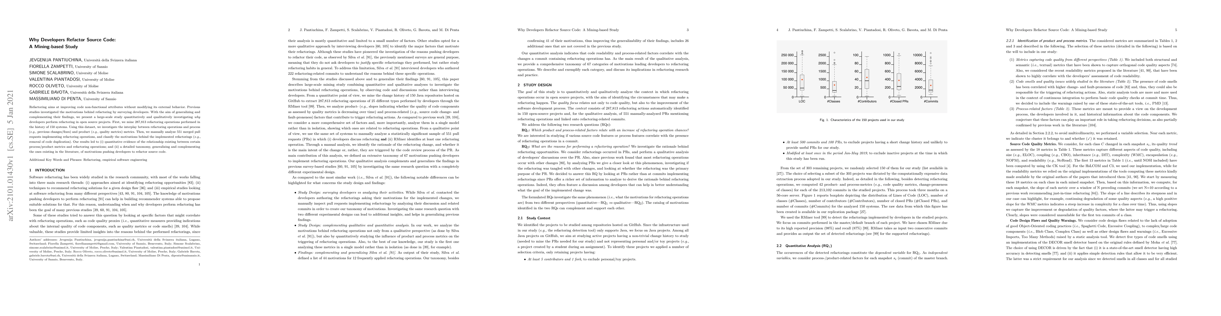 This study quantitatively and qualitatively analyzes the reasons behind developers' refactoring activities in open source projects, mining 287,813 refactoring operations across 150 systems and manually examining 551 pull requests. The findings reveal a relationship between refactoring and various process/product metrics and provide a detailed taxonomy of motivations for refactoring, complementing existing literature.