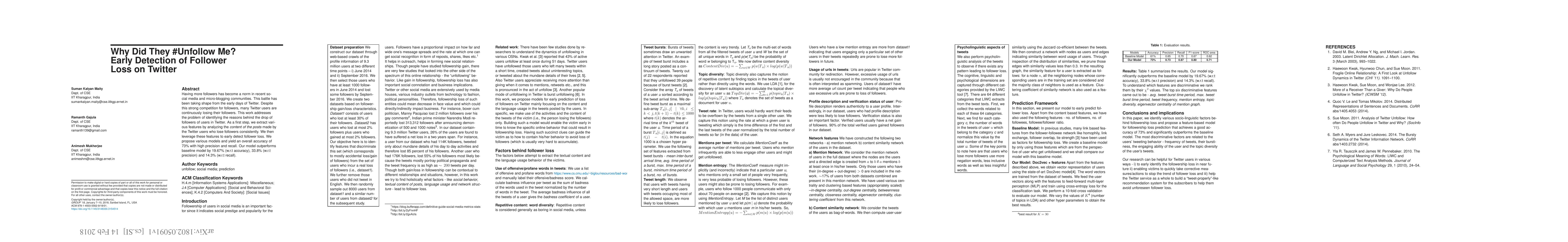 Having more followers has become a norm in recent social media and micro-blogging communities. This battle has been taking shape from the early days of Twitter. Despite this strong competition for followers, many Twitter users are continuously losing their followers. This work addresses the problem of identifying the reasons behind the drop of followers of users in Twitter. As a first step, we extract various features by analyzing the content of the posts made by the Twitter users who lose followers consistently. We then leverage these features to early detect follower loss. We propose various models and yield an overall accuracy of 73% with high precision and recall. Our model outperforms baseline model by 19.67% (w.r.t accuracy), 33.8% (w.r.t precision) and 14.3% (w.r.t recall).