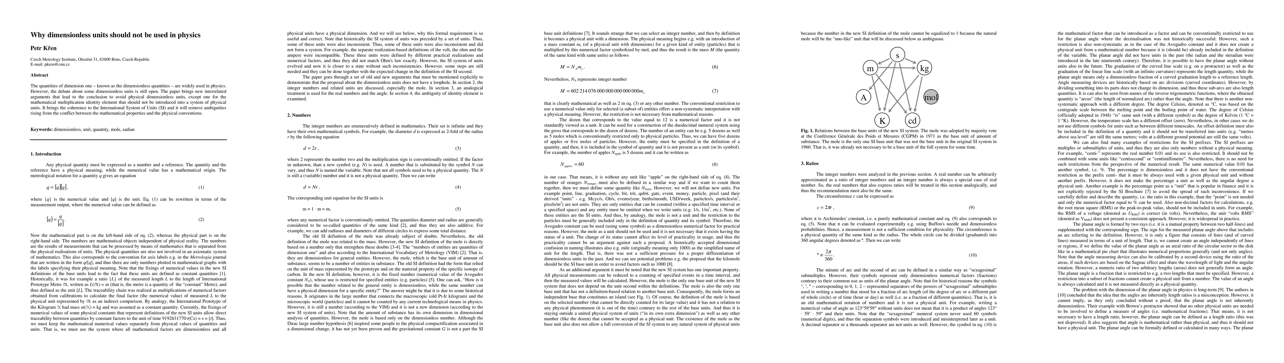 The paper argues against the use of dimensionless units in physics, except for the mathematical multiplication identity, to maintain coherence in the International System of Units (SI) and eliminate ambiguities arising from conflicts between mathematical properties and physical conventions.