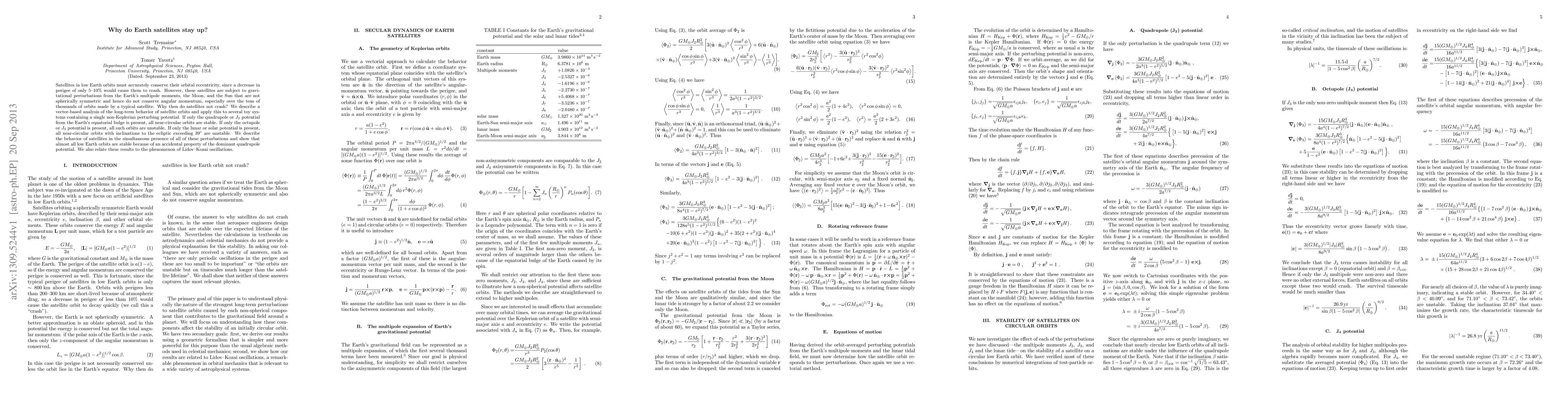 Satellites in low Earth orbits remain stable despite gravitational perturbations due to an accidental property of the dominant quadrupole potential, which makes near-circular orbits stable in its presence.