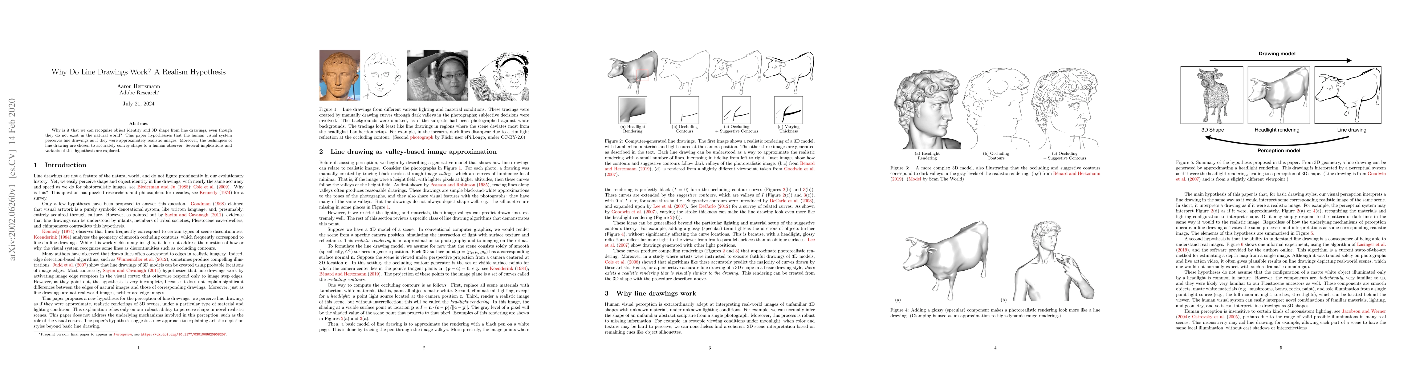 This paper hypothesizes that humans recognize line drawings because our visual system interprets them as approximately realistic images, and explores how line drawing techniques effectively convey shape to observers. It discusses implications and variations of this realism hypothesis.