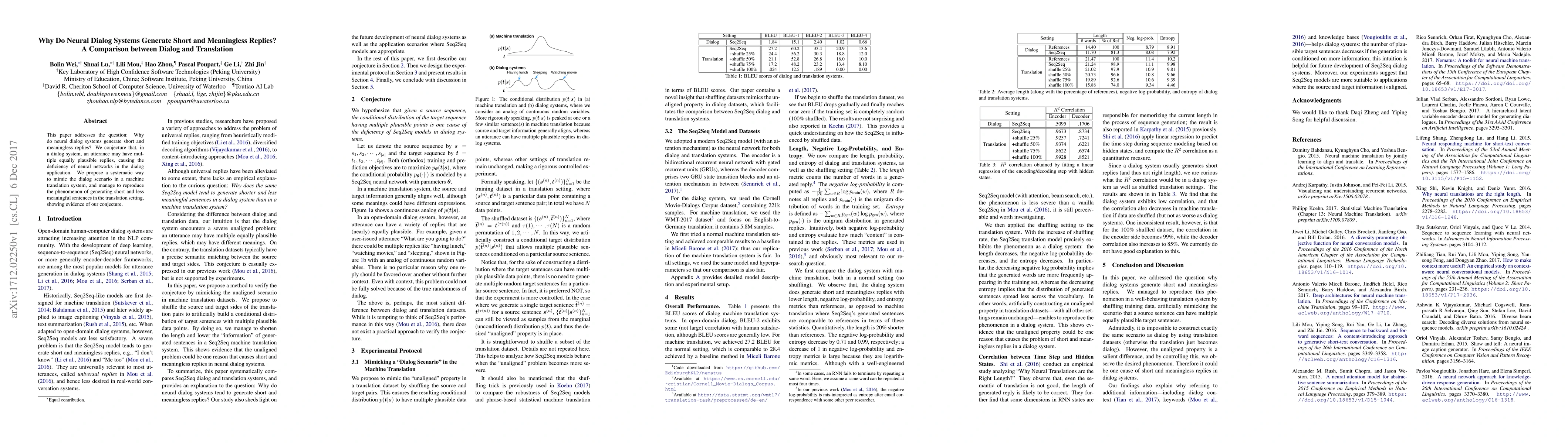 This paper addresses the question: Why do neural dialog systems generate short and meaningless replies? We conjecture that, in a dialog system, an utterance may have multiple equally plausible replies, causing the deficiency of neural networks in the dialog application. We propose a systematic way to mimic the dialog scenario in a machine translation system, and manage to reproduce the phenomenon of generating short and less meaningful sentences in the translation setting, showing evidence of our conjecture.