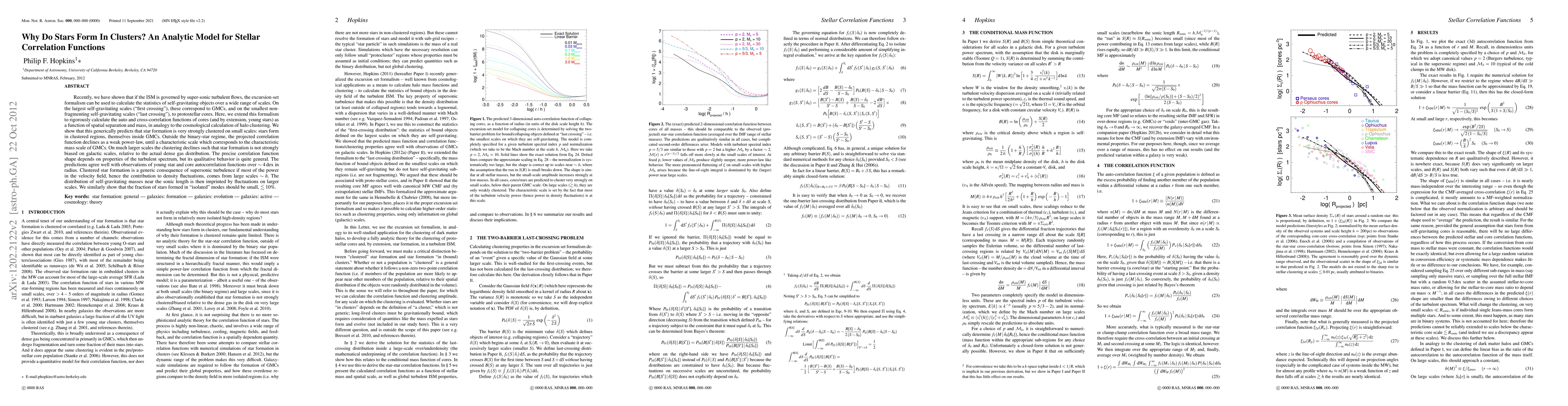 Recently, we have shown that if the ISM is governed by super-sonic turbulent flows, the excursion-set formalism can be used to calculate the statistics of self-gravitating objects over a wide range of scales. On the largest self-gravitating scales ('first crossing'), these correspond to GMCs, and on the smallest non-fragmenting self-gravitating scales ('last crossing'), to protostellar cores. Here, we extend this formalism to rigorously calculate the auto and cross-correlation functions of cores (and by extension, young stars) as a function of spatial separation and mass, in analogy to the cosmological calculation of halo clustering. We show that this generically predicts that star formation is very strongly clustered on small scales: stars form in clusters, themselves inside GMCs. Outside the binary-star regime, the projected correlation function declines as a weak power-law, until a characteristic scale which corresponds to the characteristic mass scale of GMCs. On much larger scales the clustering declines such that star formation is not strongly biased on galactic scales, relative to the actual dense gas distribution. The precise correlation function shape depends on properties of the turbulent spectrum, but its qualitative behavior is quite general. The predictions agree well with observations of young star and core autocorrelation functions over ~4 dex in radius. Clustered star formation is a generic consequence of supersonic turbulence if most of the power in the velocity field, hence the contribution to density fluctuations, comes from large scales. The distribution of self-gravitating masses near the sonic length is then imprinted by fluctuations on larger scales. We similarly show that the fraction of stars formed in 'isolated' modes should be small (\lesssim10%).