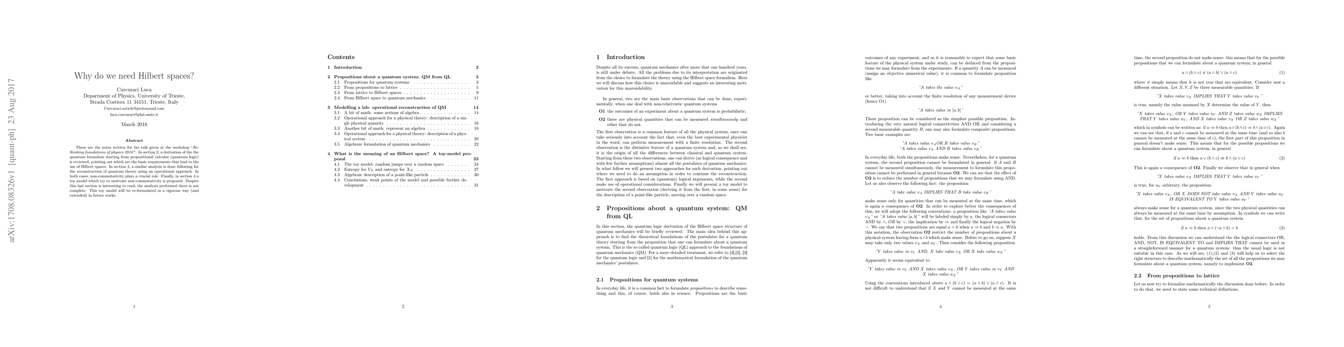 A research paper explores why Hilbert spaces are necessary for quantum mechanics, highlighting non-commutativity as a key requirement, and proposes a toy model to motivate its importance.