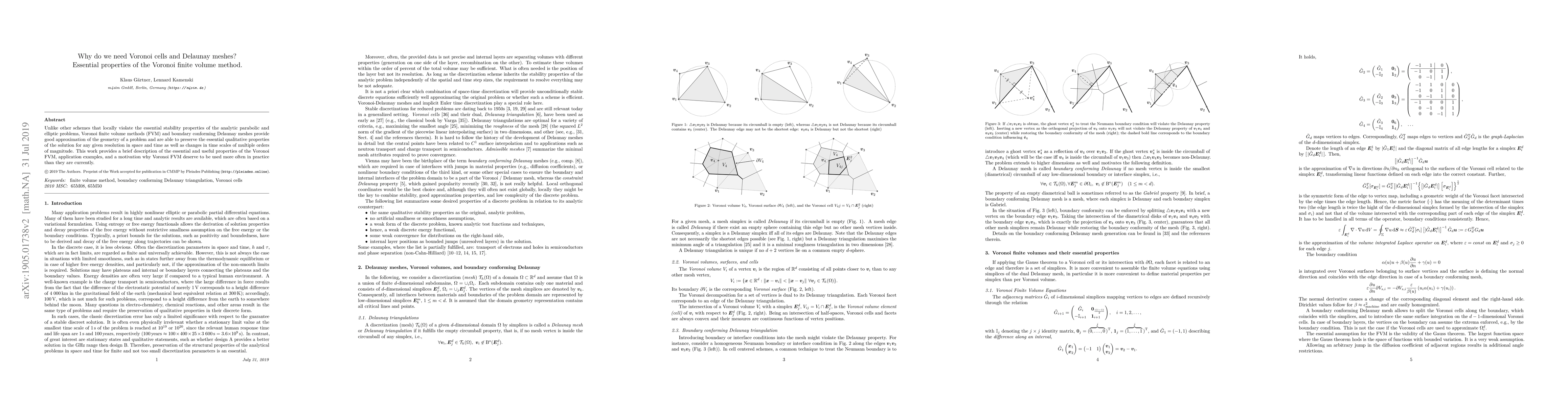 Unlike other schemes that locally violate the essential stability properties of the analytic parabolic and elliptic problems, Voronoi finite volume methods (FVM) and boundary conforming Delaunay meshes provide good approximation of the geometry of a problem and are able to preserve the essential qualitative properties of the solution for any given resolution in space and time as well as changes in time scales of multiple orders of magnitude. This work provides a brief description of the essential and useful properties of the Voronoi FVM, application examples, and a motivation why Voronoi FVM deserve to be used more often in practice than they are currently.