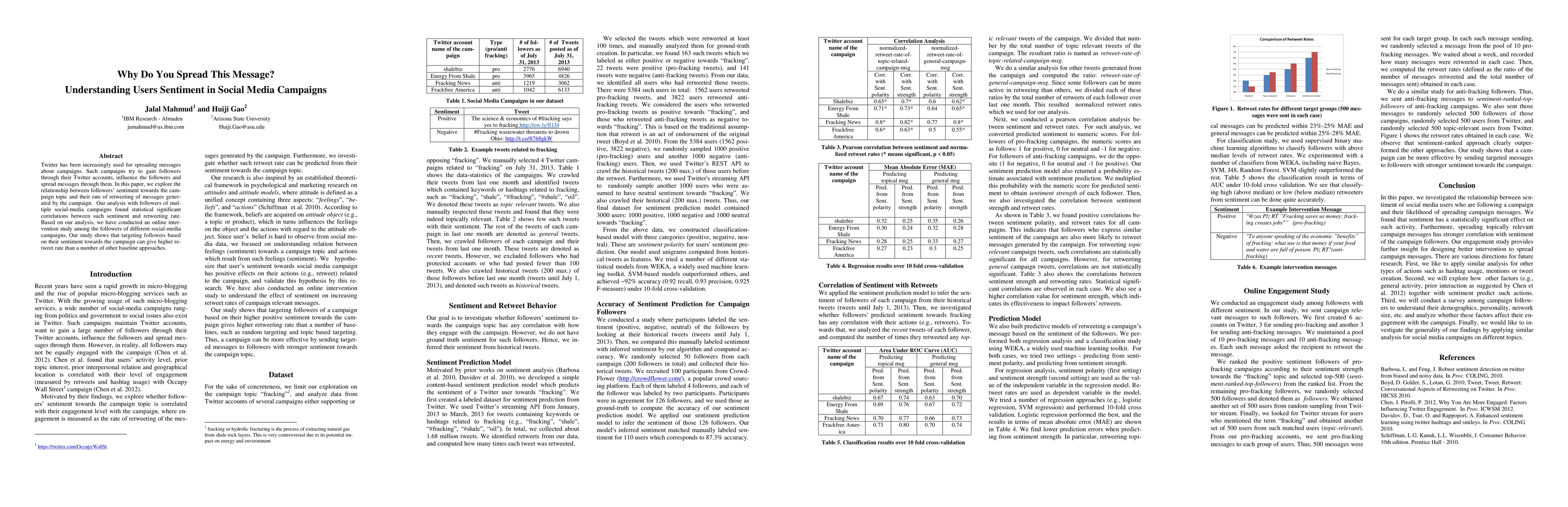Twitter has been increasingly used for spreading messages about campaigns. Such campaigns try to gain followers through their Twitter accounts, influence the followers and spread messages through them. In this paper, we explore the relationship between followers sentiment towards the campaign topic and their rate of retweeting of messages generated by the campaign. Our analysis with followers of multiple social-media campaigns found statistical significant correlations between such sentiment and retweeting rate. Based on our analysis, we have conducted an online intervention study among the followers of different social-media campaigns. Our study shows that targeting followers based on their sentiment towards the campaign can give higher retweet rate than a number of other baseline approaches.