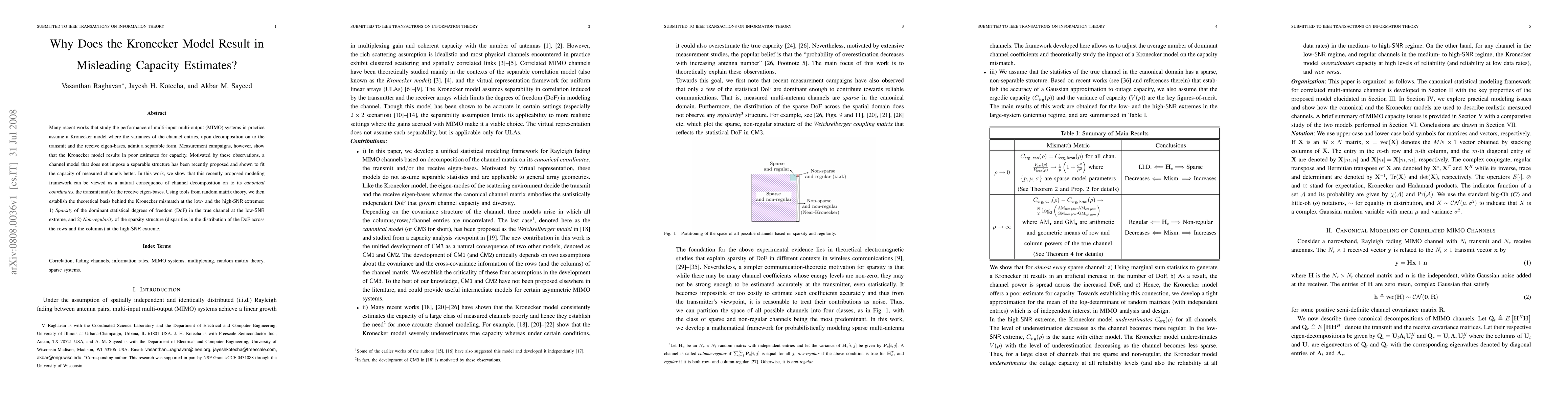 Many recent works that study the performance of multi-input multi-output (MIMO) systems in practice assume a Kronecker model where the variances of the channel entries, upon decomposition on to the transmit and the receive eigen-bases, admit a separable form. Measurement campaigns, however, show that the Kronecker model results in poor estimates for capacity. Motivated by these observations, a channel model that does not impose a separable structure has been recently proposed and shown to fit the capacity of measured channels better. In this work, we show that this recently proposed modeling framework can be viewed as a natural consequence of channel decomposition on to its canonical coordinates, the transmit and/or the receive eigen-bases. Using tools from random matrix theory, we then establish the theoretical basis behind the Kronecker mismatch at the low- and the high-SNR extremes: 1) Sparsity of the dominant statistical degrees of freedom (DoF) in the true channel at the low-SNR extreme, and 2) Non-regularity of the sparsity structure (disparities in the distribution of the DoF across the rows and the columns) at the high-SNR extreme.