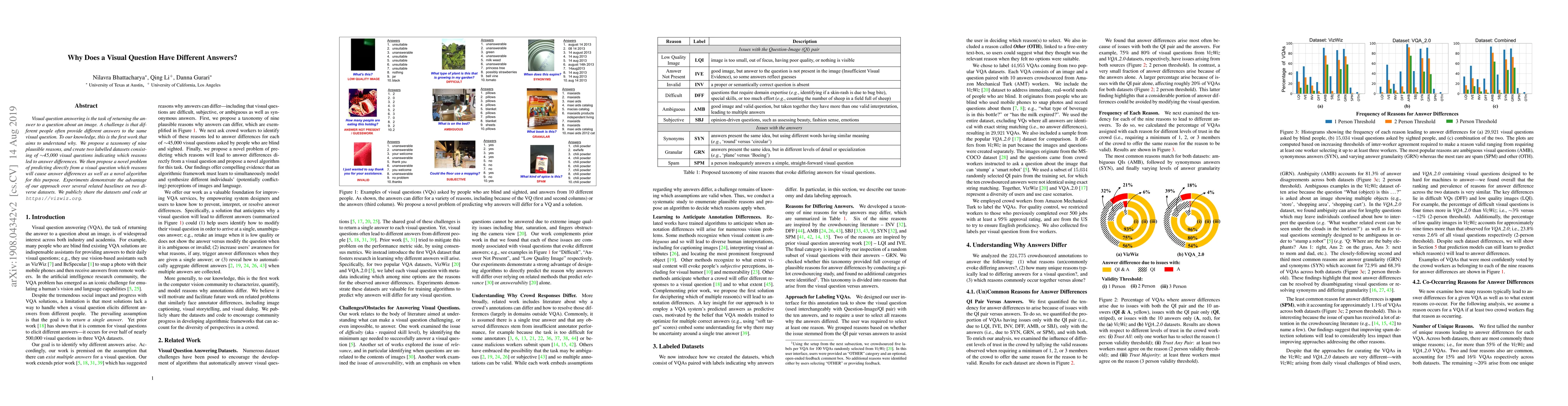Researchers identify 9 reasons why people provide different answers to the same visual question and propose a method to predict these differences, demonstrating its advantage over existing baselines on two diverse datasets.