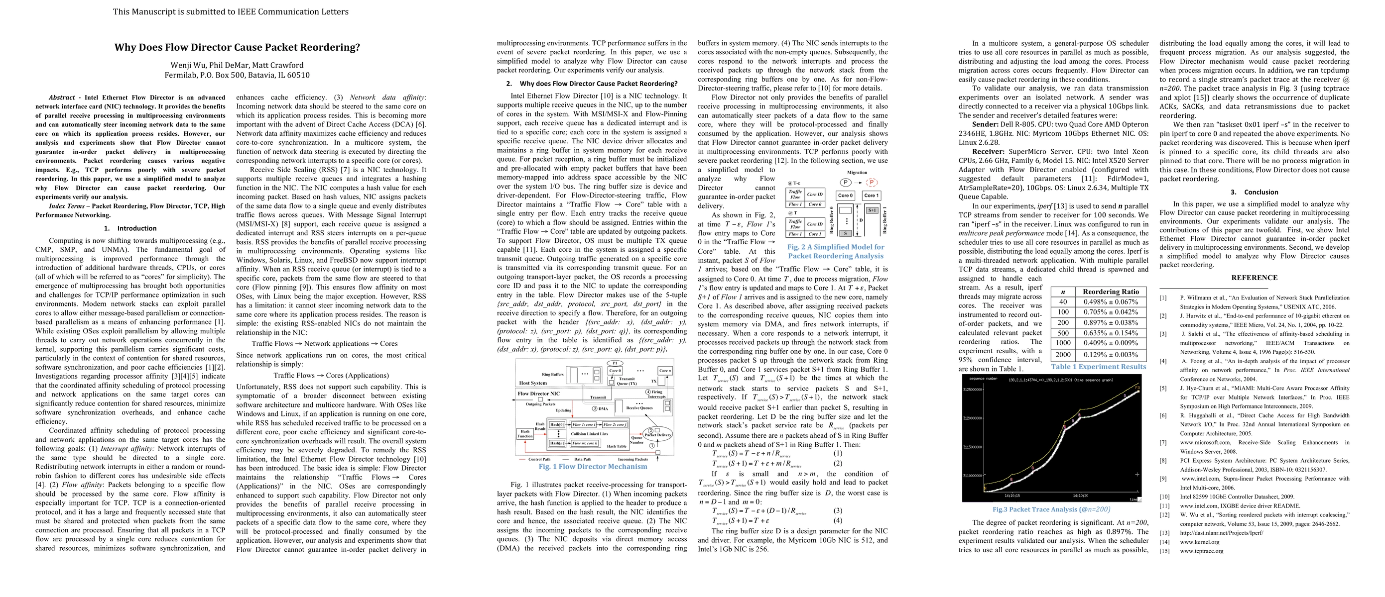 This paper investigates why Intel Ethernet Flow Director causes packet reordering in multiprocessing environments, despite its benefits for parallel receive processing. It finds that Flow Director cannot guarantee in-order packet delivery, leading to negative impacts such as poor TCP performance. The analysis and experiments confirm the causes of this packet reordering.