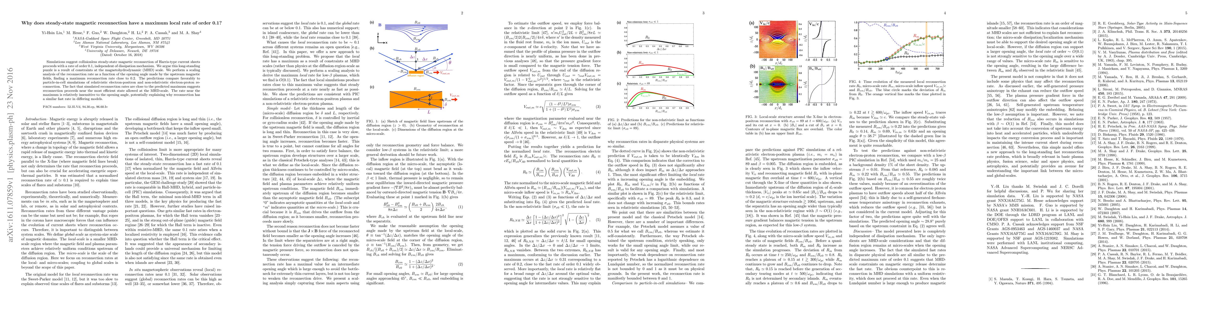 Simulations suggest collisionless steady-state magnetic reconnection of Harris-type current sheets proceeds with a rate of order 0.1, independent of dissipation mechanism. We argue this long-standing puzzle is a result of constraints at the magnetohydrodynamic (MHD) scale. We perform a scaling analysis of the reconnection rate as a function of the opening angle made by the upstream magnetic fields, finding a maximum reconnection rate close to 0.2. The predictions compare favorably to particle-in-cell simulations of relativistic electron-positron and non-relativistic electron-proton reconnection. The fact that simulated reconnection rates are close to the predicted maximum suggests reconnection proceeds near the most efficient state allowed at the MHD-scale. The rate near the maximum is relatively insensitive to the opening angle, potentially explaining why reconnection has a similar fast rate in differing models.