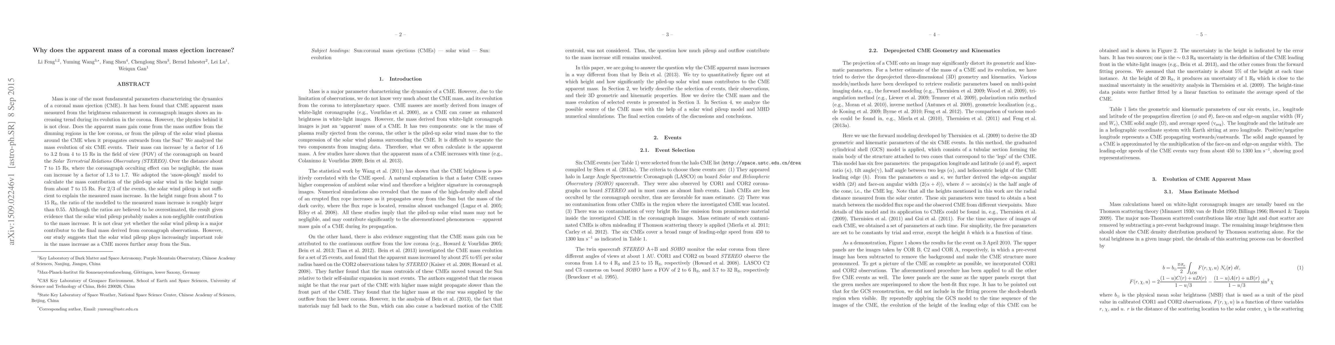 Mass is one of the most fundamental parameters characterizing the dynamics of a coronal mass ejection (CME). It has been found that CME apparent mass measured from the brightness enhancement in coronagraph images shows an increasing trend during its evolution in the corona. However, the physics behind it is not clear. Does the apparent mass gain come from the mass outflow from the dimming regions in the low corona, or from the pileup of the solar wind plasma around the CME when it propagates outwards from the Sun? We analyzed the mass evolution of six CME events. Their mass can increase by a factor of 1.6 to 3.2 from 4 to 15 Rs in the field of view (FOV) of the coronagraph on board the Solar Terrestrial Relations Observatory (STEREO). Over the distance about 7 to 15 Rs, where the coronagraph occulting effect can be negligible, the mass can increase by a factor of 1.3 to 1.7. We adopted the `snow-plough' model to calculate the mass contribution of the piled-up solar wind in the height range from about 7 to 15 Rs. For 2/3 of the events, the solar wind pileup is not sufficient to explain the measured mass increase. In the height range from about 7 to 15 Rs, the ratio of the modeled to the measured mass increase is roughly larger than 0.55. Although the ratios are believed to be overestimated, the result gives evidence that the solar wind pileup probably makes a non-negligible contribution to the mass increase. It is not clear yet whether the solar wind pileup is a major contributor to the final mass derived from coronagraph observations. However, our study suggests that the solar wind pileup plays increasingly important role in the mass increase as a CME moves further away from the Sun.