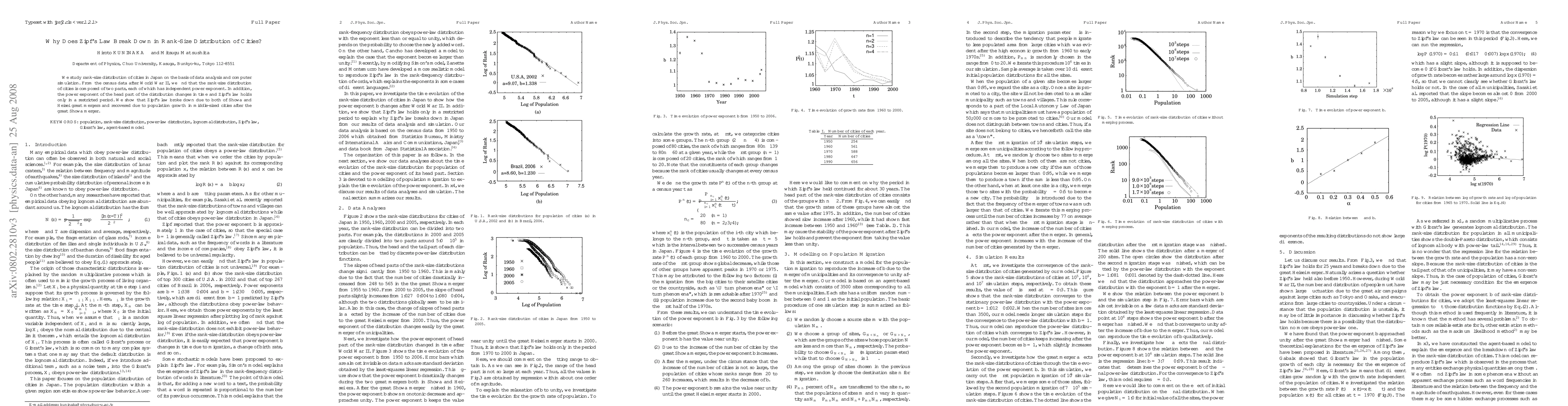This study analyzes Japan's post-WWII city rank-size distribution, revealing it consists of two parts with distinct power exponents. Zipf's law only applies during a limited timeframe, breaking down due to major city mergers and later recovering from population growth in mid-sized cities.