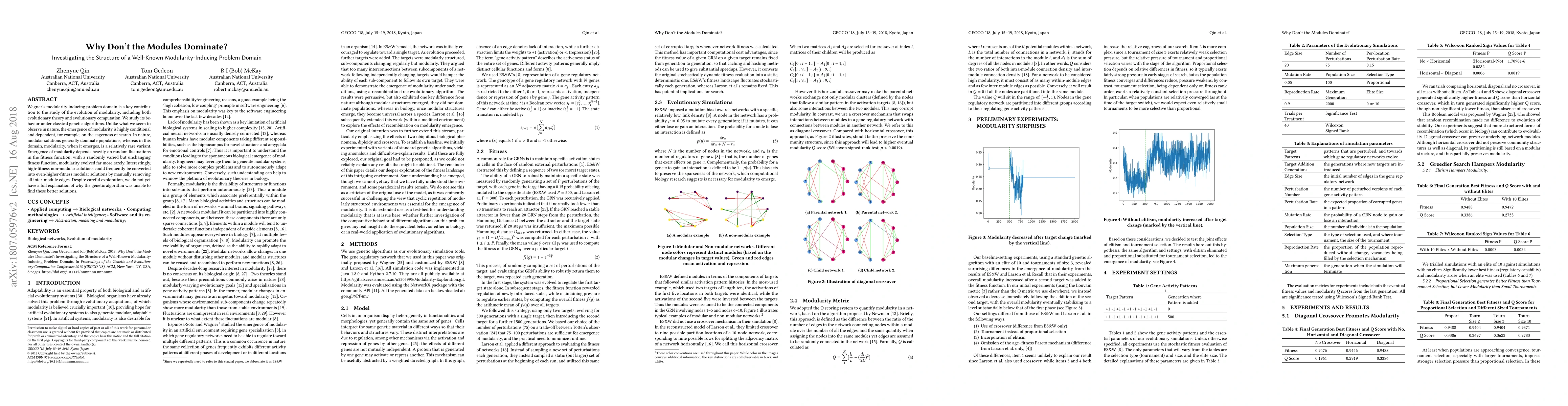 Wagner's modularity inducing problem domain is a key contribution to the study of the evolution of modularity, including both evolutionary theory and evolutionary computation. We study its behavior under classical genetic algorithms. Unlike what we seem to observe in nature, the emergence of modularity is highly conditional and dependent, for example, on the eagerness of search. In nature, modular solutions generally dominate populations, whereas in this domain, modularity, when it emerges, is a relatively rare variant. Emergence of modularity depends heavily on random fluctuations in the fitness function, with a randomly varied but unchanging fitness function, modularity evolved far more rarely. Interestingly, high-fitness non-modular solutions could frequently be converted into even-higher-fitness modular solutions by manually removing all inter-module edges. Despite careful exploration, we do not yet have a full explanation of why the genetic algorithm was unable to find these better solutions.