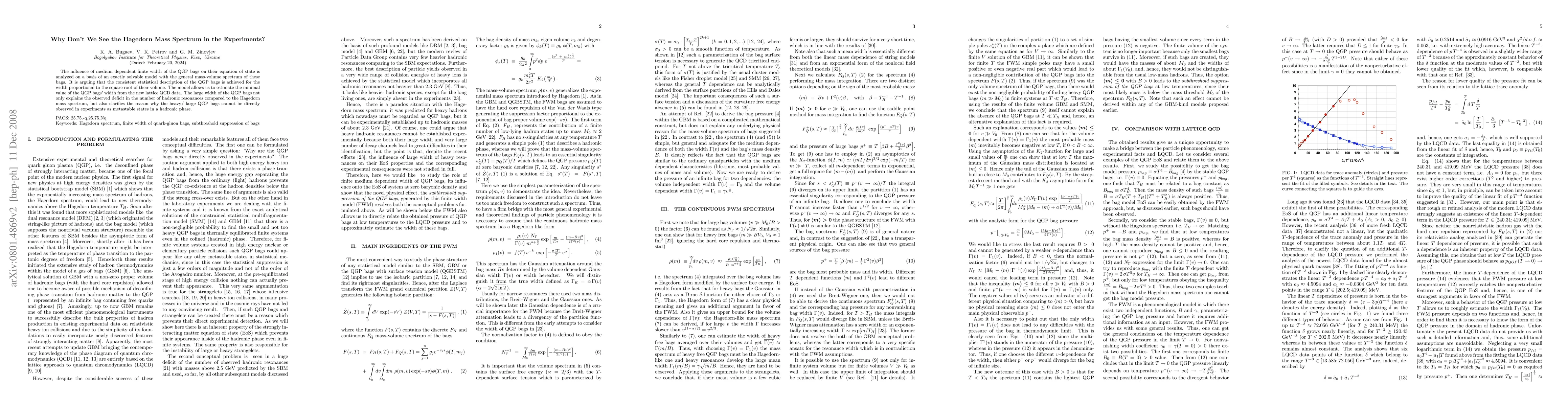 Researchers analyze QGP bags' equation of state to explain why they don't see the Hagedorn mass spectrum in experiments, concluding that a large bag width clarifies this phenomenon.