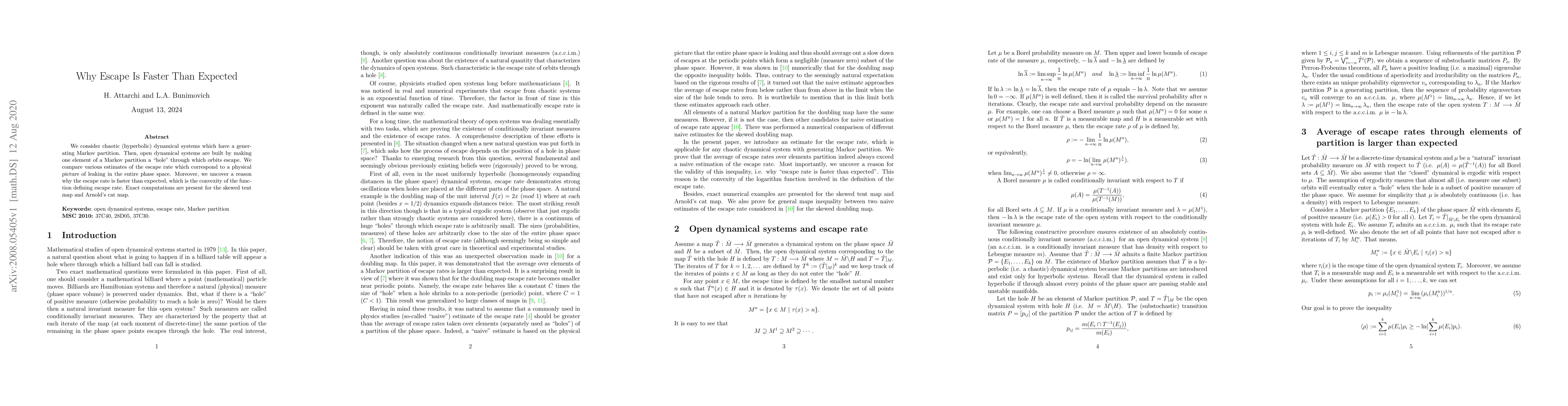 Researchers studied chaotic dynamical systems with a generating Markov partition and found that escape rates can exceed expectations due to the convexity of the escape rate function, leading to faster-than-expected escape times.